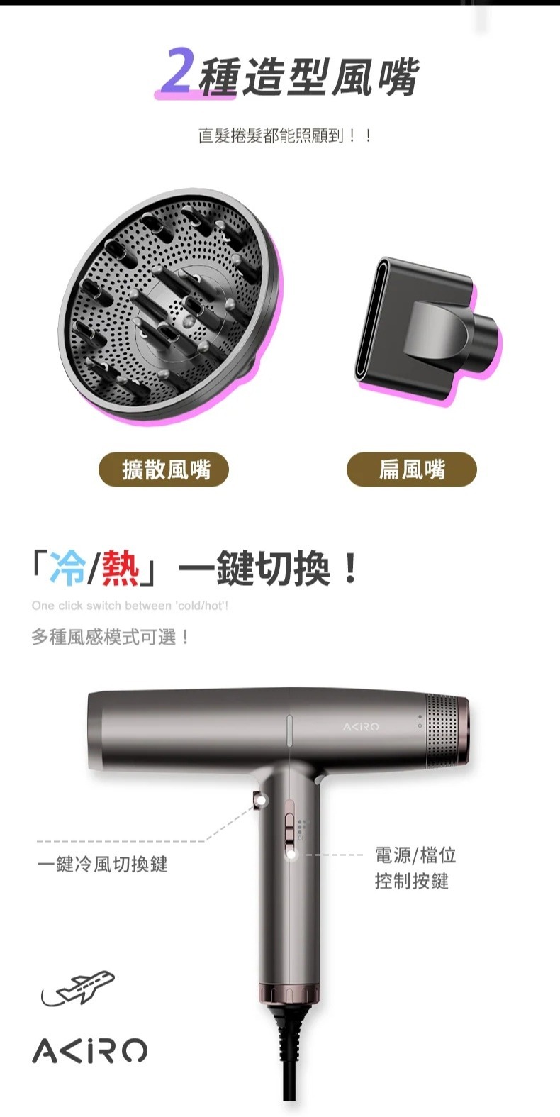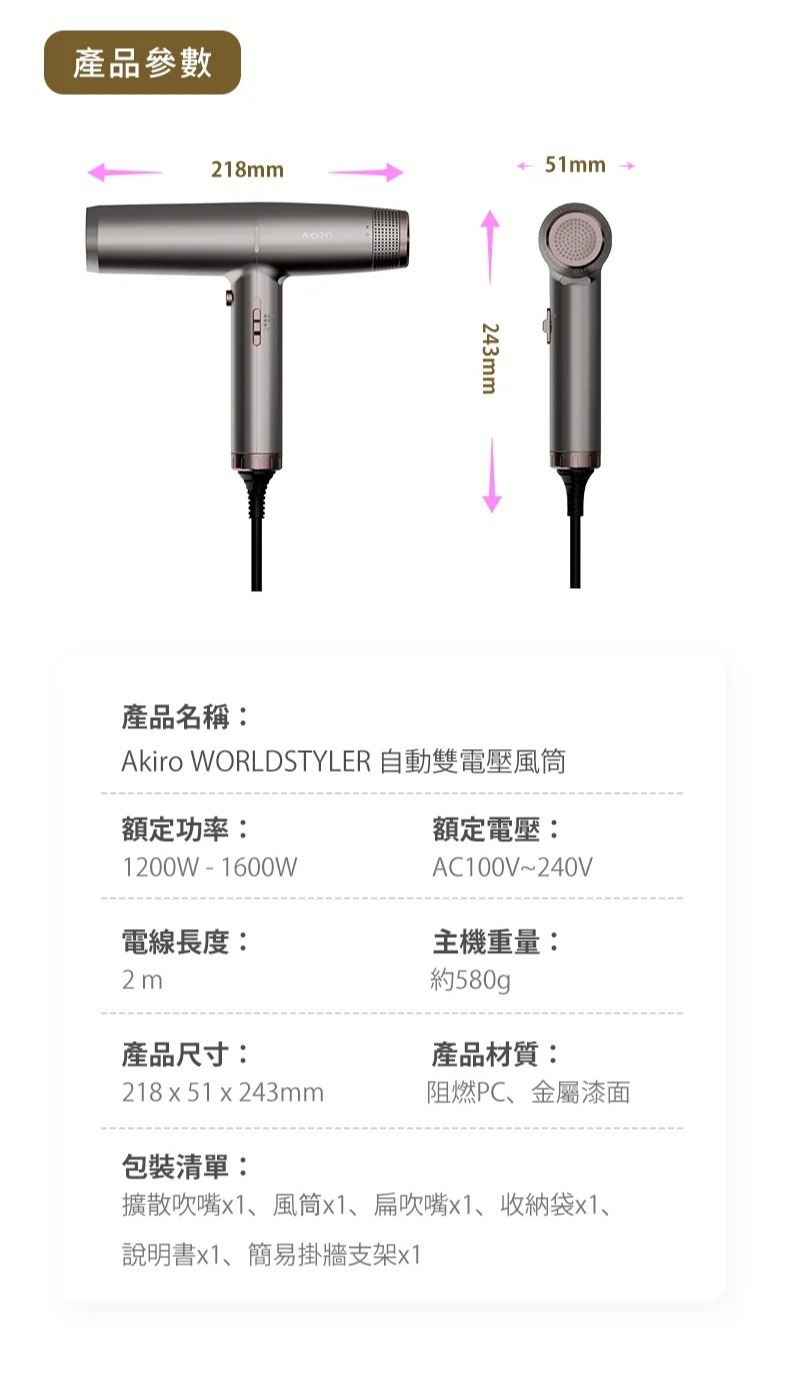 為了滿足旅遊愛好者的時尚與便利需求,Akiro 推出2025全新 Akiro WorldStyler 風筒,將全球電壓適配(100V -240V 自動變頻)、3億等離子護髮技術、三段直觀溫控與便攜設計完美結合。手持僅重330克,隨時隨地輕鬆打造專屬潮流造型,讓您的旅途更加輕鬆有型!