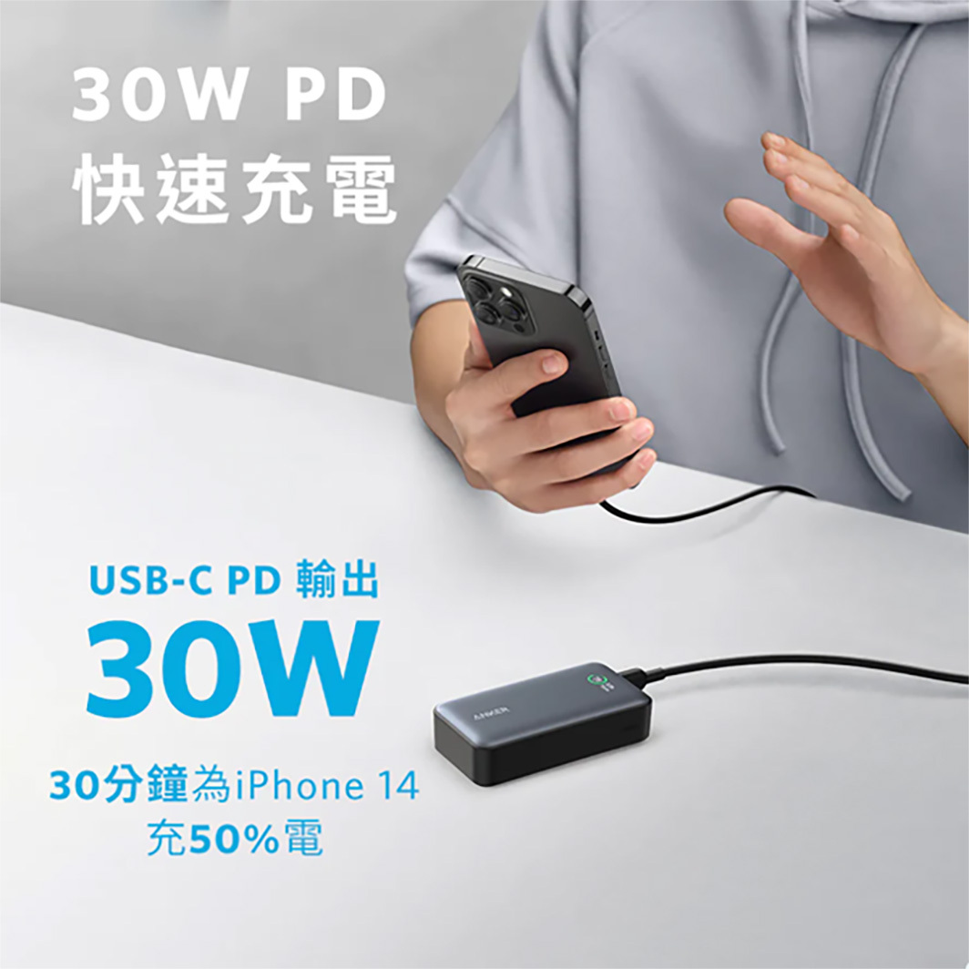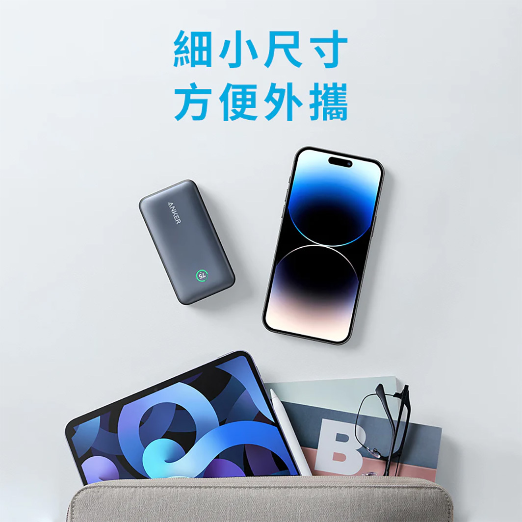 Anker 533 (A1256) Power Bank (PowerCore 30W) 10000mAh 30W PD 行動電源結合了優異的充電性能和便攜設計,為您的移動充電需求提供了可靠的解決方案。無論是在旅行途中還是日常使用中,這款行動電源都能確保您的設備獲得及時的電力支持。