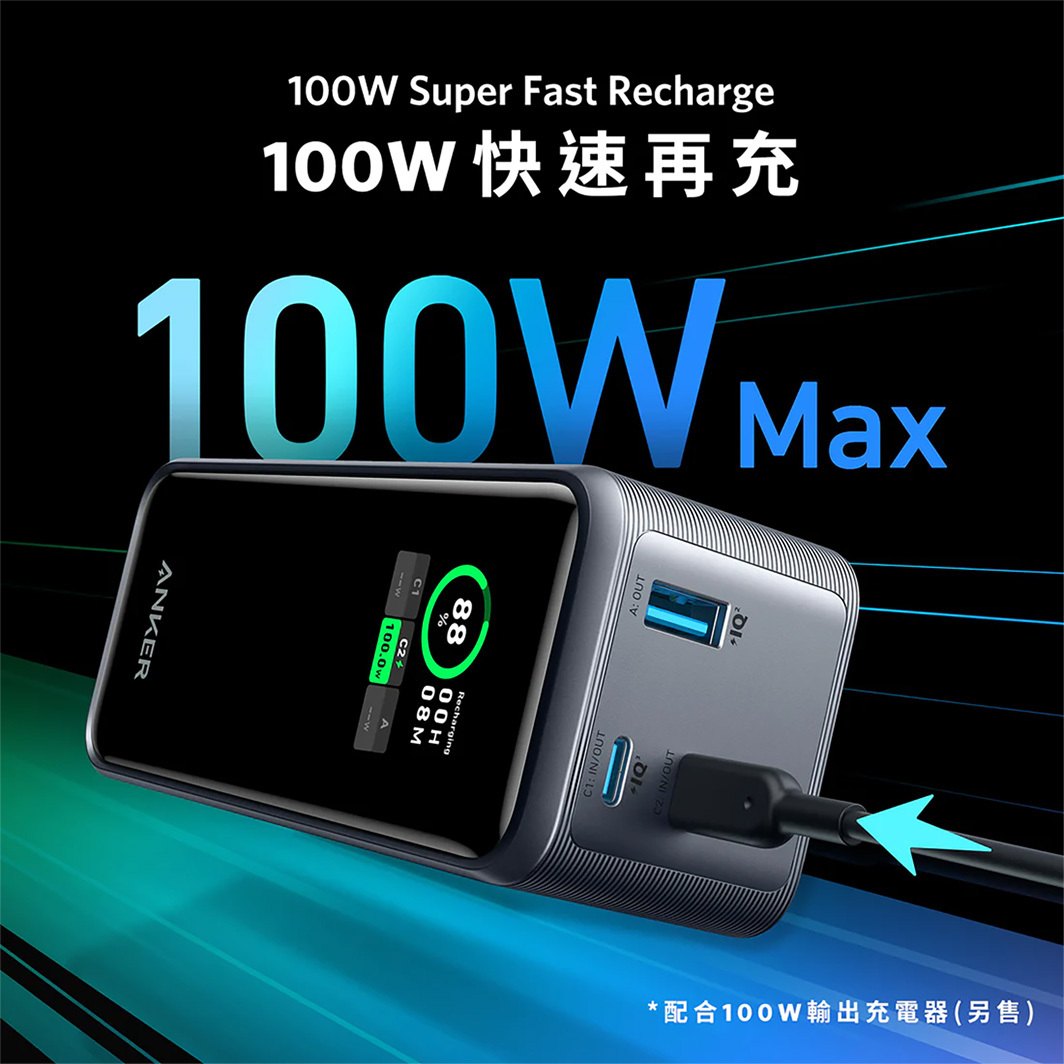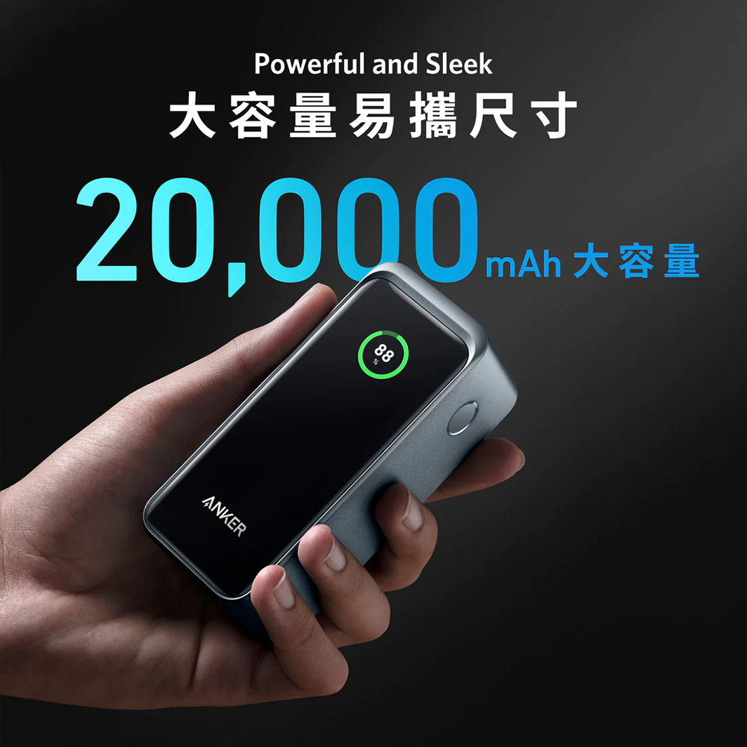 Anker (A1336) Prime 20000mAh Power Bank (200W) 是一款超高容量行動電源,具有超快速充電功能行動電源