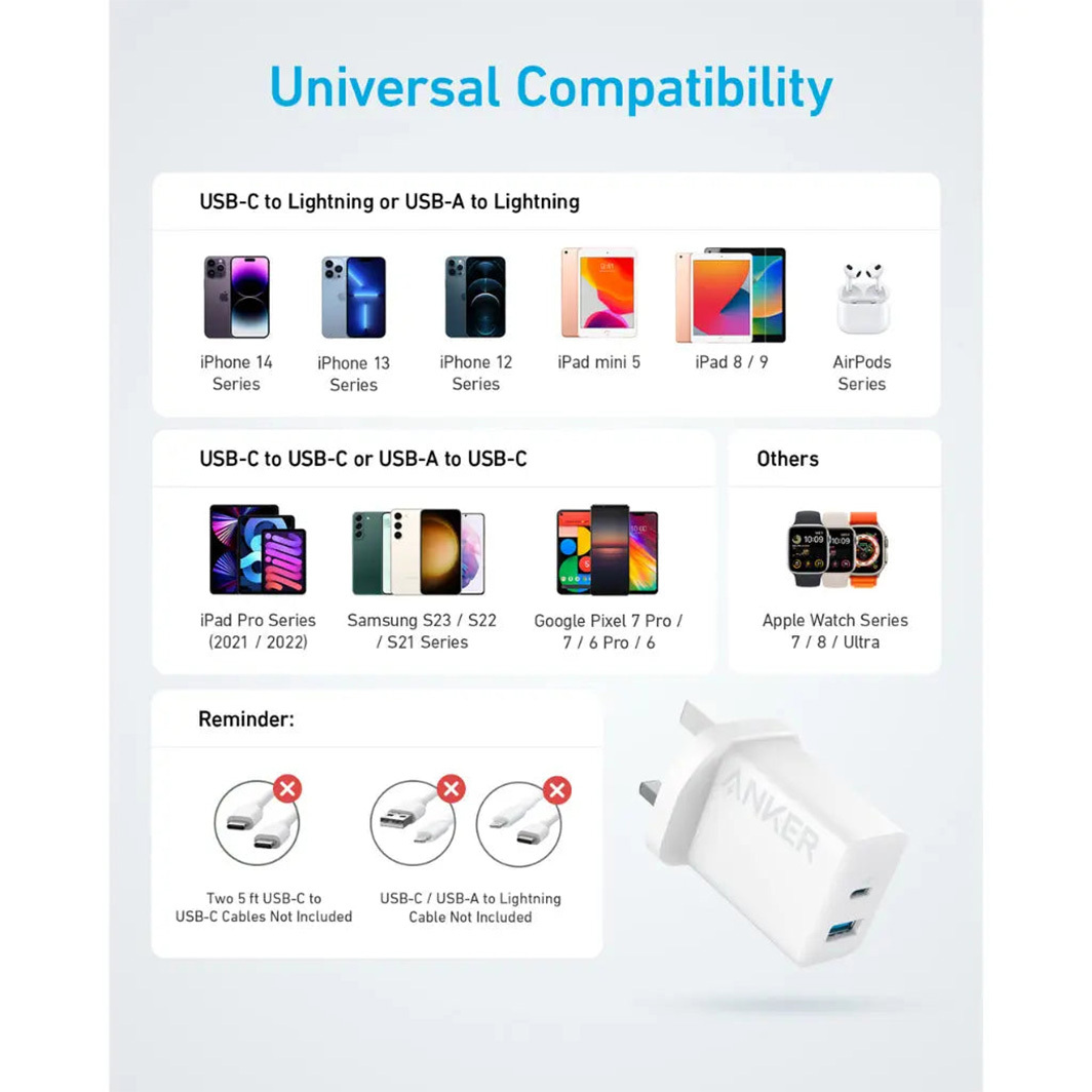 Anker 20W Wall Charger是一款便攜式的雙輸出充電器,提供高達20W的輸出功率,適用於充電各種設備。這款充電器配備兩個USB-A端口,讓您同時為兩台設備充電,非常適合在家庭、辦公室或旅行中使用。無論是智能手機、平板還是其他設備,能為您提供穩定而快速的充電體驗。