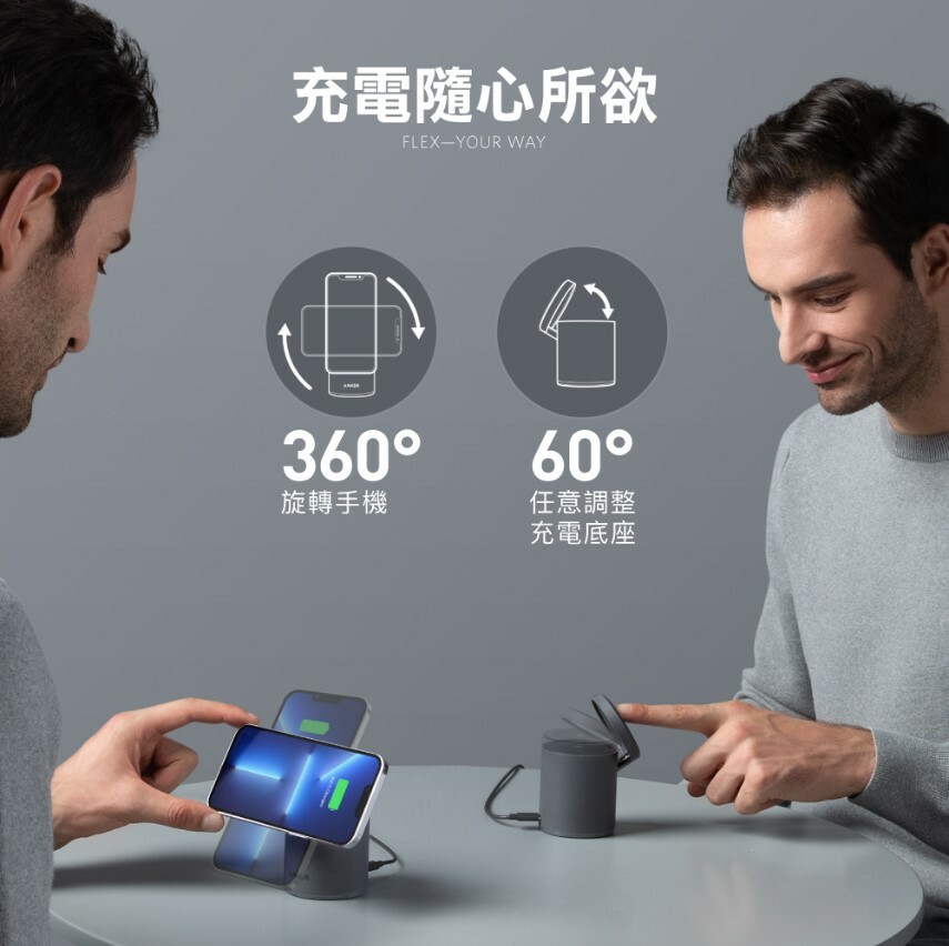 Anker MagGo 623 二合一磁吸無線充電座結合了方便、快速充電、靈活調整角度等多種功能,為用戶提供便利且高效的充電體驗。