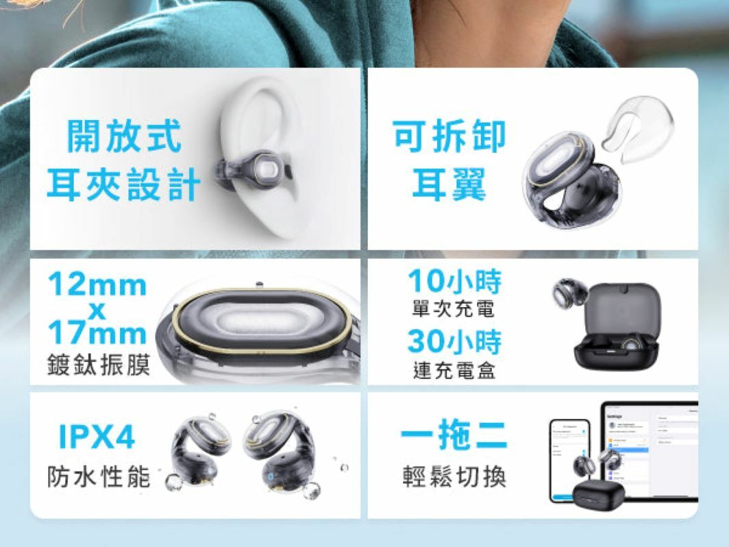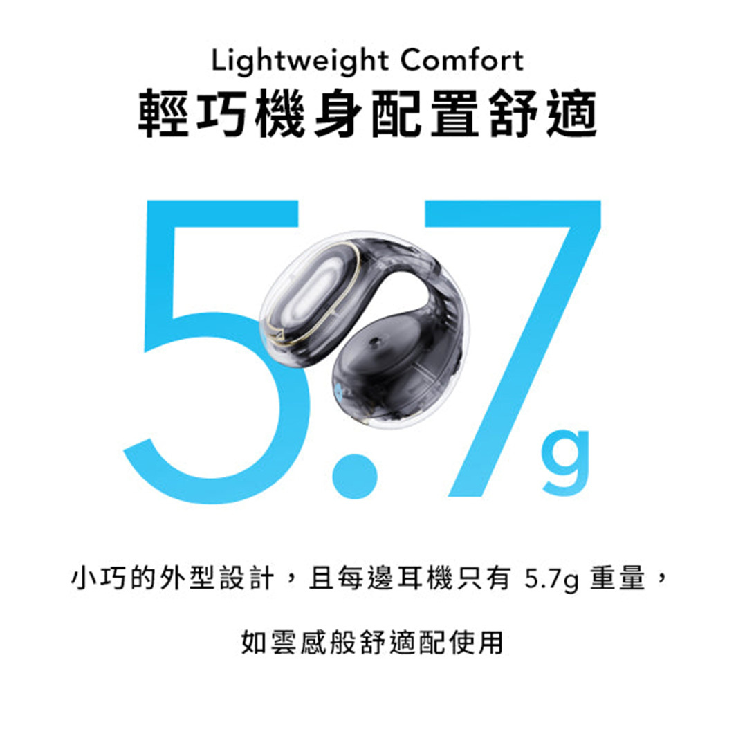 舒適配戴: 非入耳開放式設計,配戴更舒適。