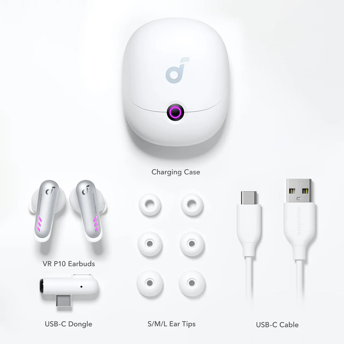 Anker Soundcore VR P10 電競真無線耳機是一款為遊戲所打造的耳機,除可連按手提電話作無線耳機外同時兼容多種裝置,包括 Steam Deck、PS4、PS5、PC 和 Switch,可同時使用藍牙和 USB-C 2.4G 無線接收器連接兩部裝置,讓您可以在通話和遊戲音樂之間輕鬆切換,不中斷遊戲體驗,,讓您在不同裝置上輕鬆切換使用享受遊戲和音樂與通話,同時保持低延遲和高音質的優秀表現。