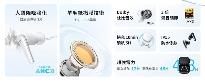 Adaptive ANC 3.0及特製S型聲腔加強人聲降噪