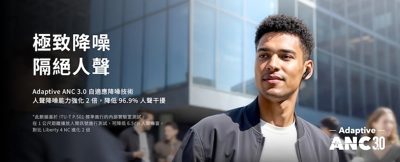 Adaptive ANC 3.0 透過每0.3秒實時演算環境並根據環境噪音主動調至合適的降噪強度