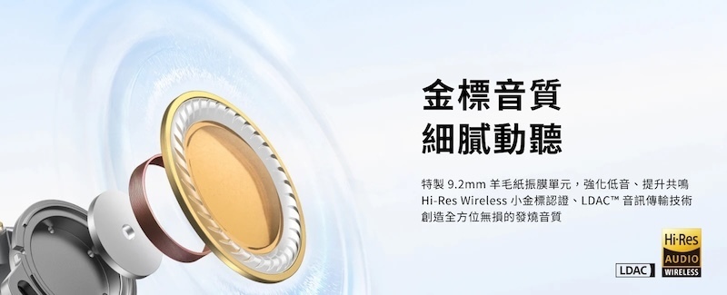 支援LDAC™️音訊,獲Hi-Res Audio Wireless認證