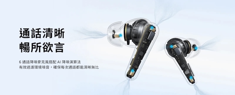 使用6個麥克風、AI降噪及防風演算法帶來清晰通話