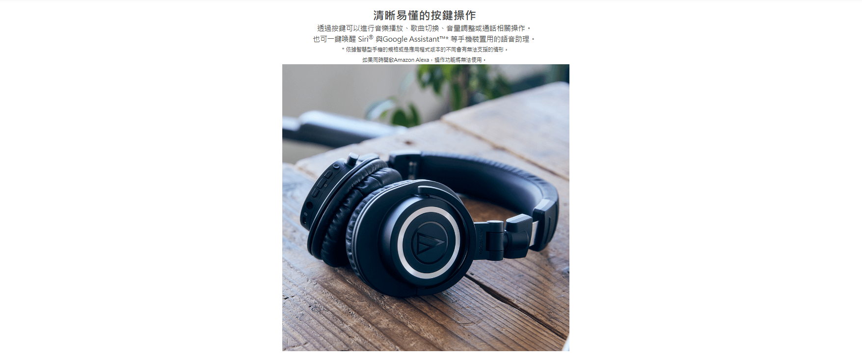 此外,ATH-M50xBT2結合波束成形的咪高峰技術,大幅度地改進了人聲收音性能,能實現更清晰的話音通話,支持與Amazon Alexa、Google Assistant