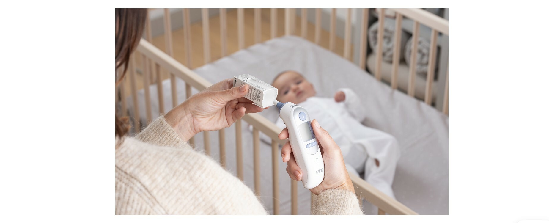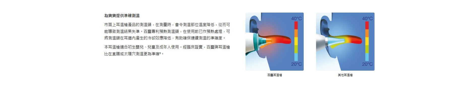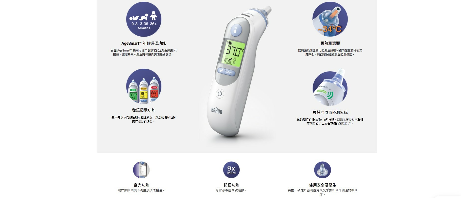 百靈 Braun IRT6520 紅外線耳溫槍 開發了獨特的AgeSmart™技術,幫助您解讀寶寶的體溫狀況。IRT6520 耳溫槍 具有發燒指示功能,電池壽命高達 2年 (或1,000次測量)。