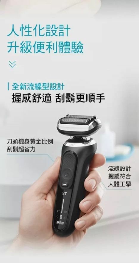 探索Braun 百靈 Series 7 乾濕兩用電動剃鬚刨 71-N4500cs,可乾濕兩用,提供舒適而靈活的剃鬚體驗。適合不同喜好的使用者。