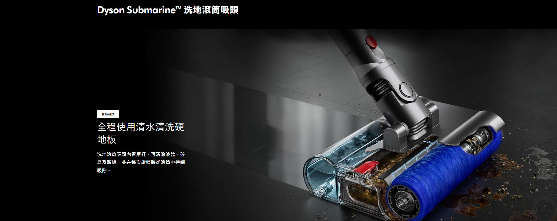 Dyson Digital Slim Submarine™ 輕量乾濕全能洗地吸塵機,結合濕乾吸功能,輕鬆應對各種清潔需求。搭載Dyson頂尖科技,徹底清潔地板,讓家居環境更清新舒適!