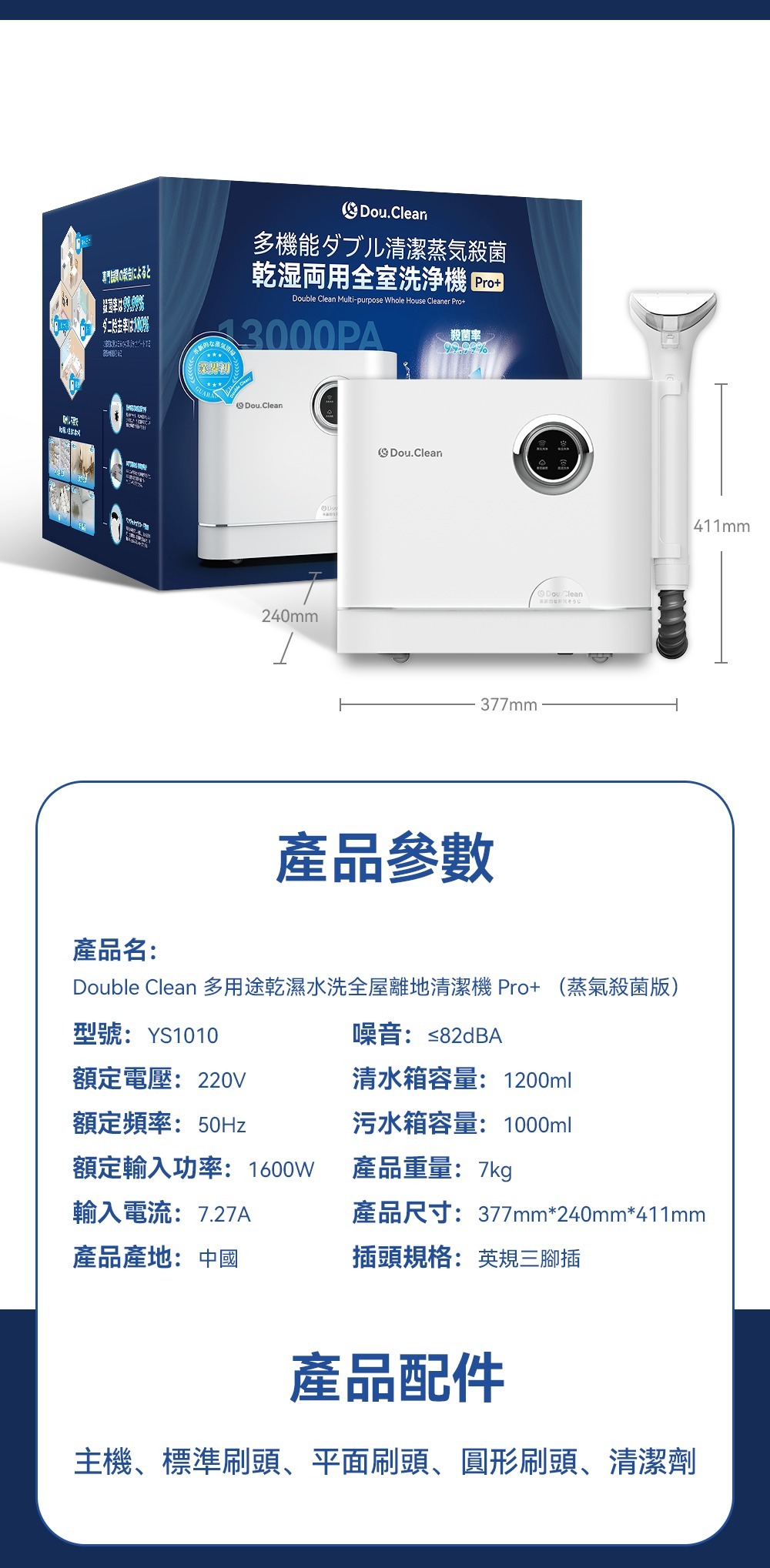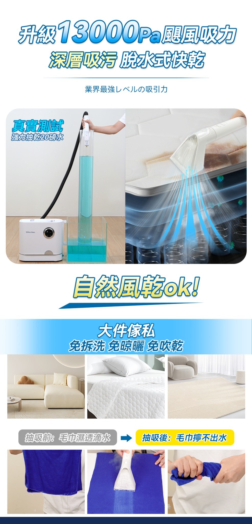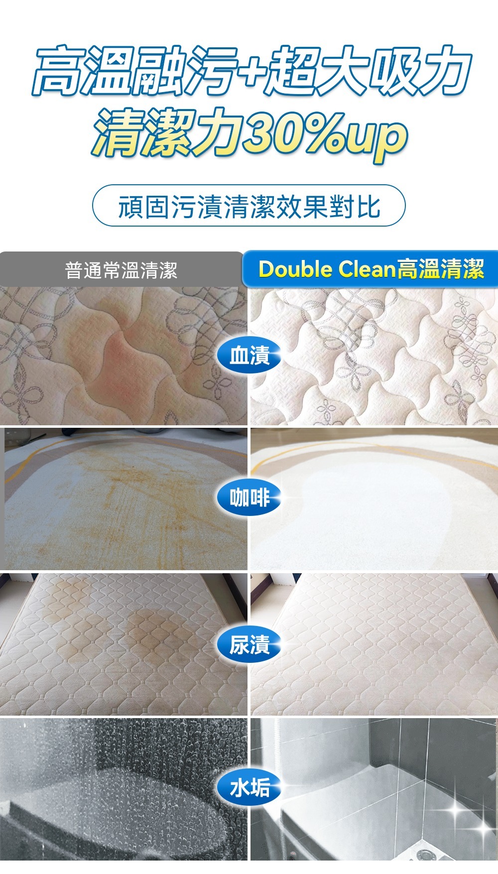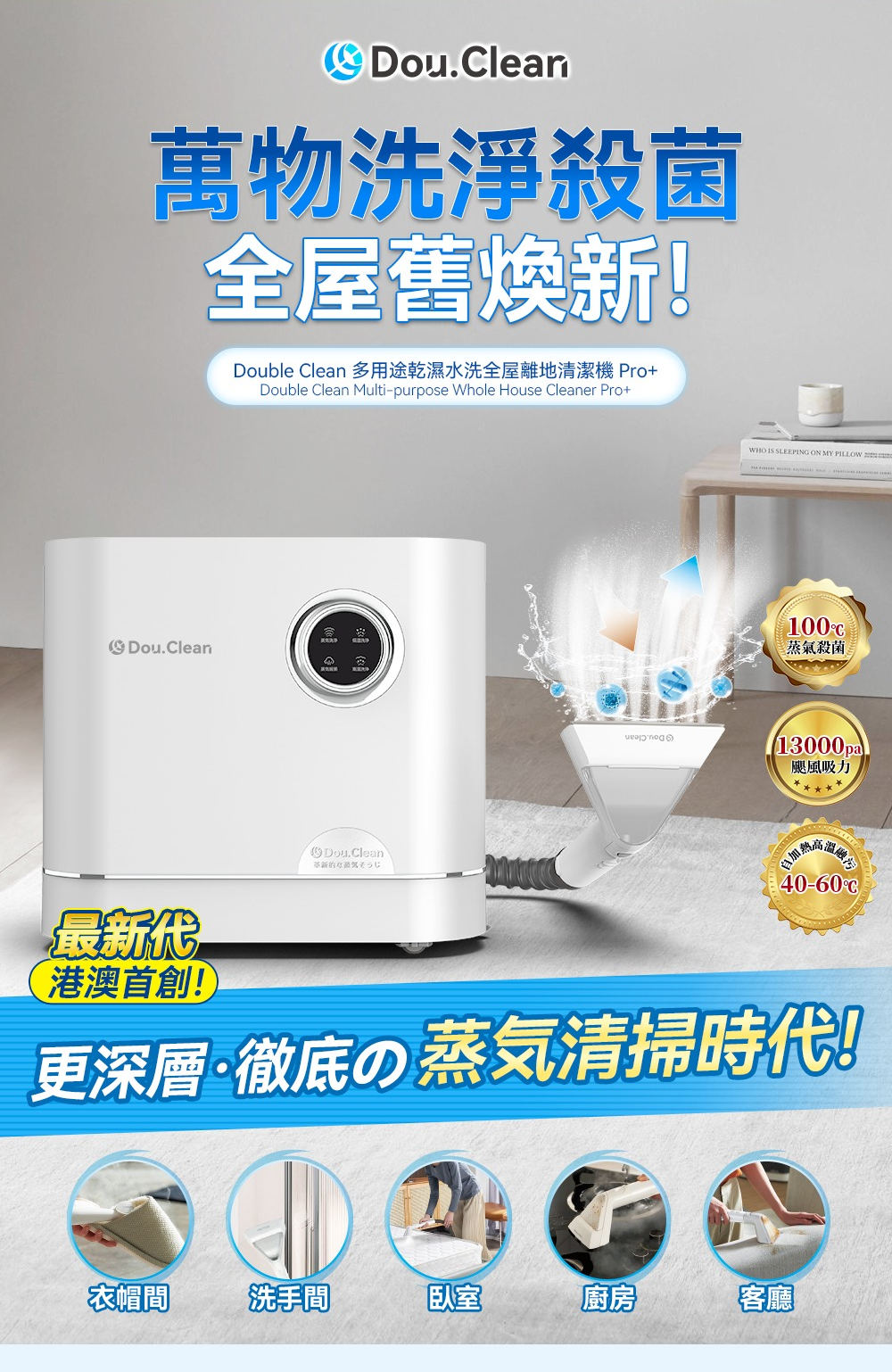 Double Clean 多用途乾濕水洗全屋離地清潔機 Pro+ (蒸氣殺菌版) - 全新升級:13000pa大吸力吸污,100度高溫蒸汽去菌,四種清潔模式+3種刷頭,清潔0死角,全屋舊換新!