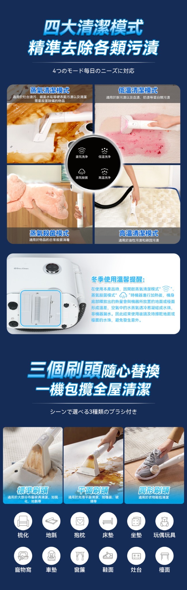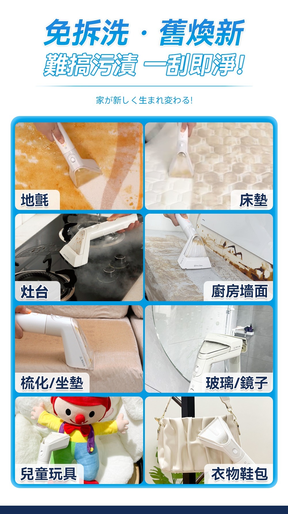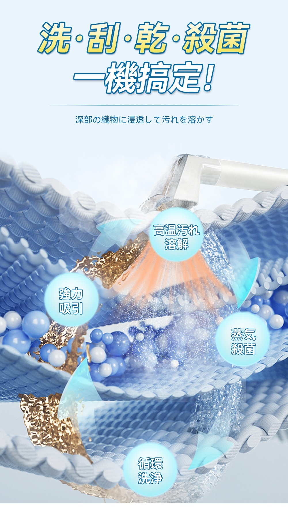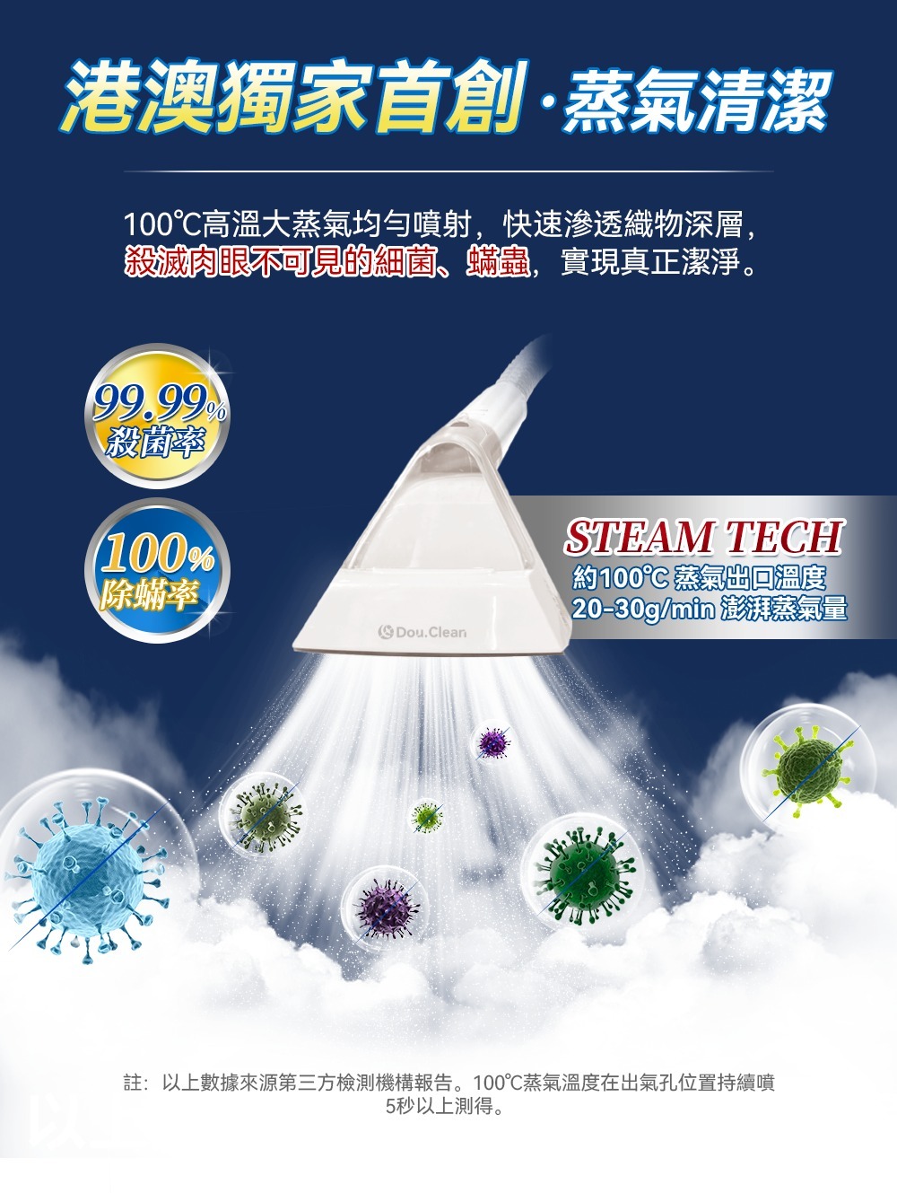 Double Clean 多用途乾濕水洗全屋離地清潔機 Pro+ (蒸氣殺菌版) - 全新升級:13000pa大吸力吸污,100度高溫蒸汽去菌,四種清潔模式+3種刷頭,清潔0死角,全屋舊換新!