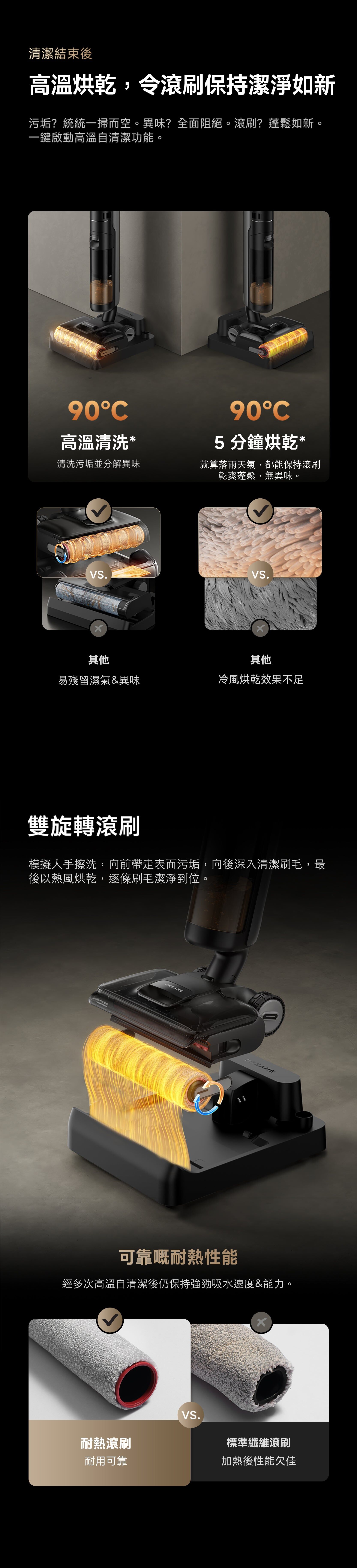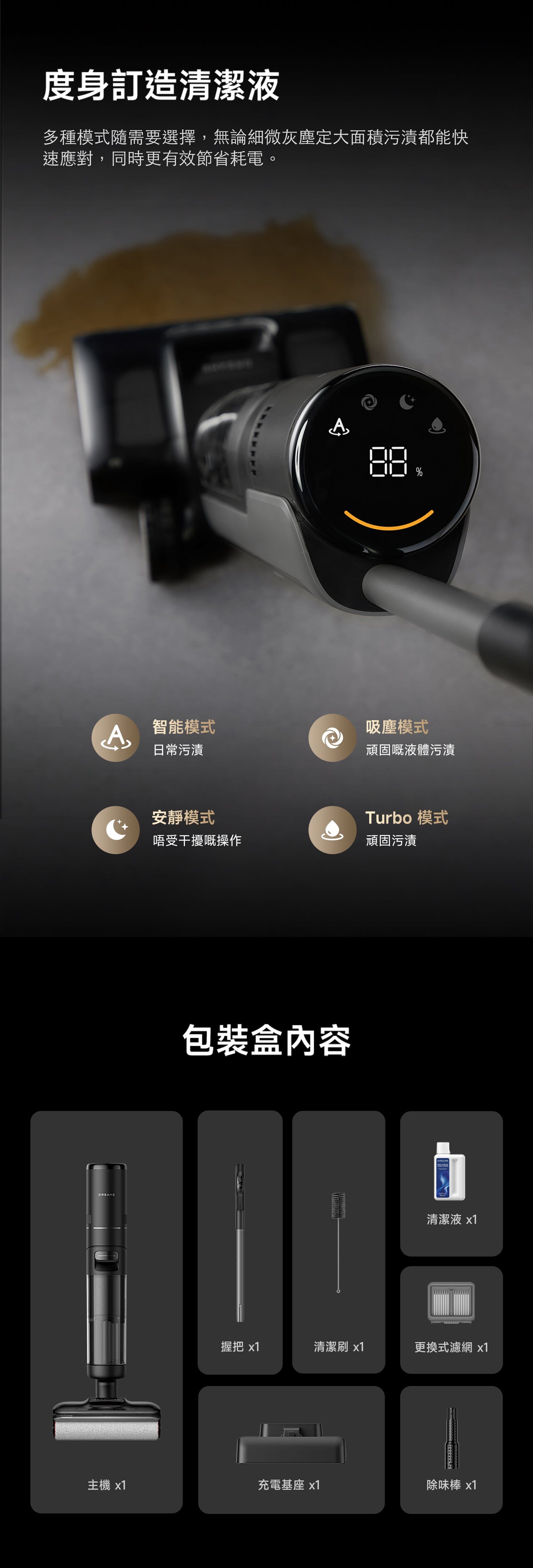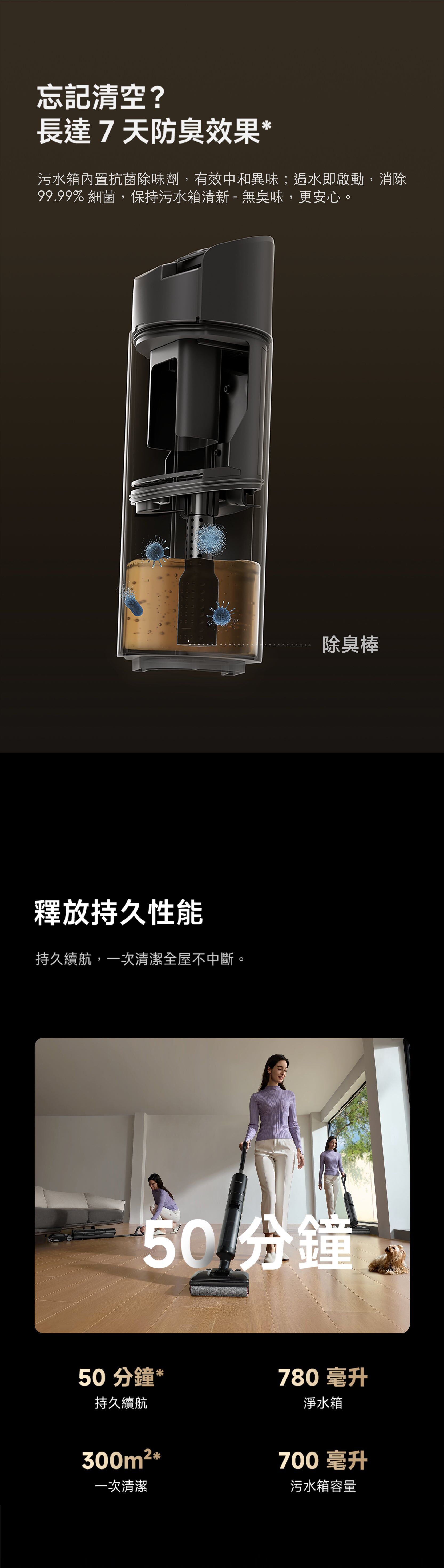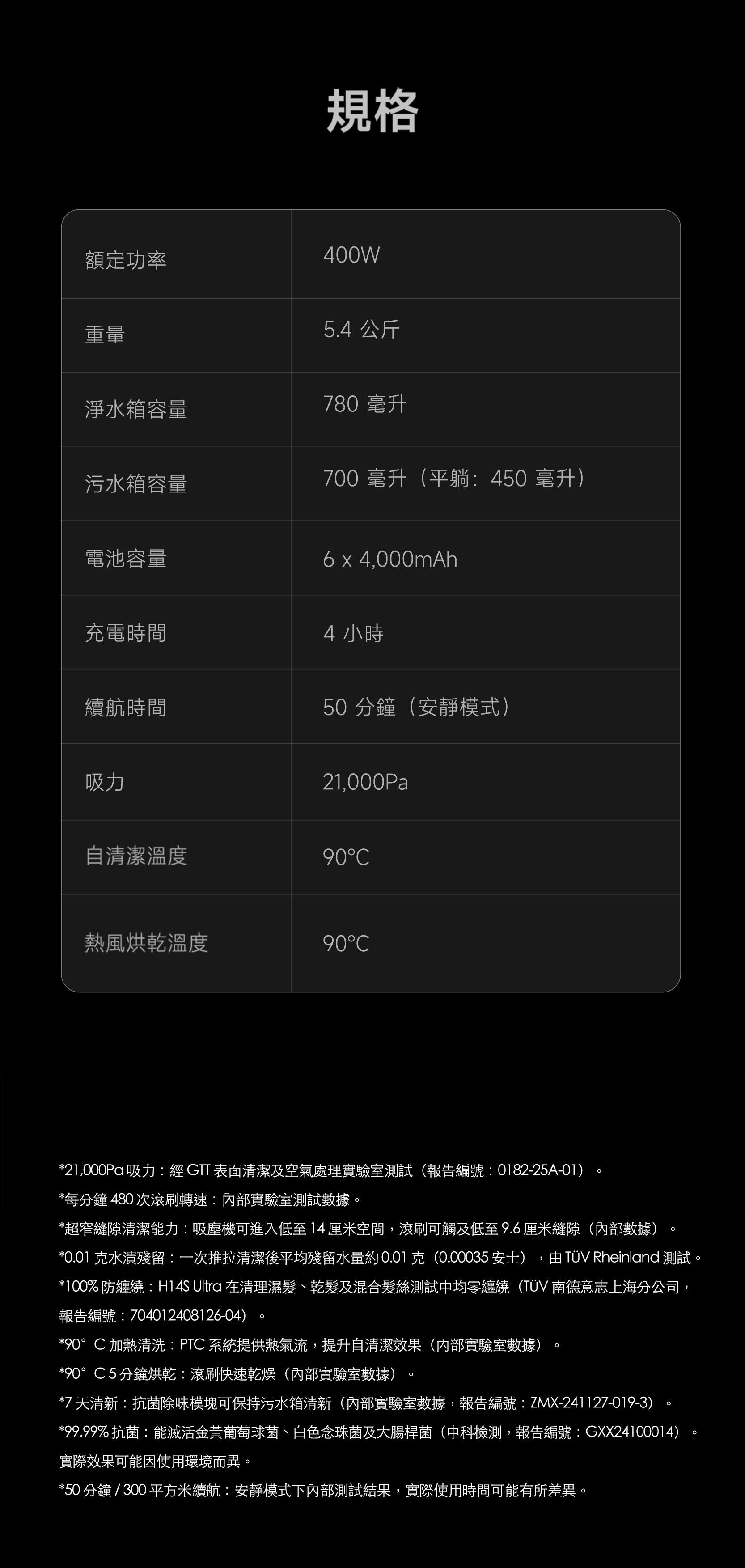 H14S 超強乾濕兩用無線吸塵器,21,000 Pa 吸力,除臭棒,防纏繞刮刀,熱水清洗/自動清潔