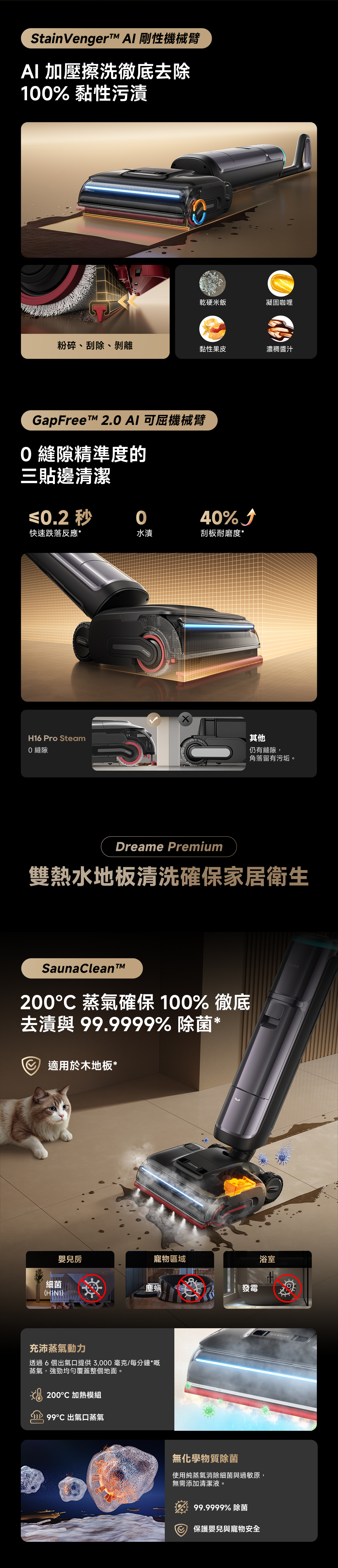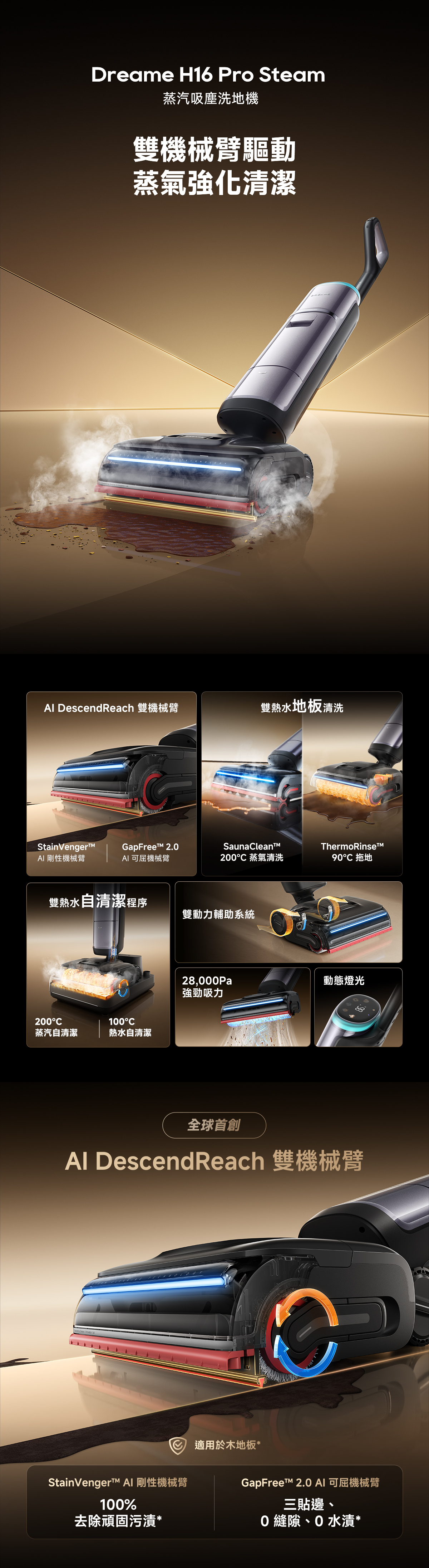 DREAME 追覓 H16 Pro Steam 蒸汽吸塵洗地機結合吸塵和蒸汽清潔功能,為您提供全面的清潔解決方案。這款多功能清潔機器可同時吸塵和洗地,讓您輕鬆打掃家中各種地面。