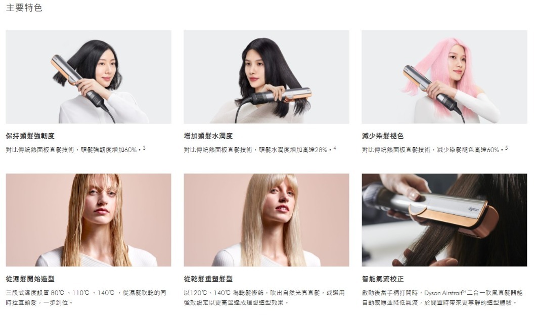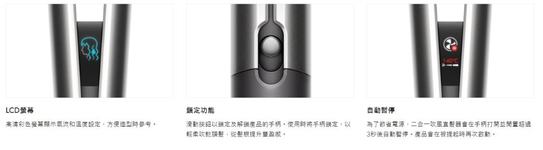 利用氣流,從濕髮吹乾同時順直髮絲。無需發熱面板。避免熱傷害。1