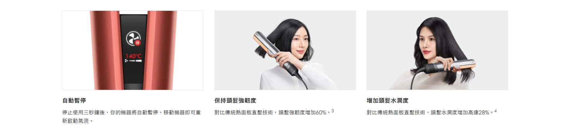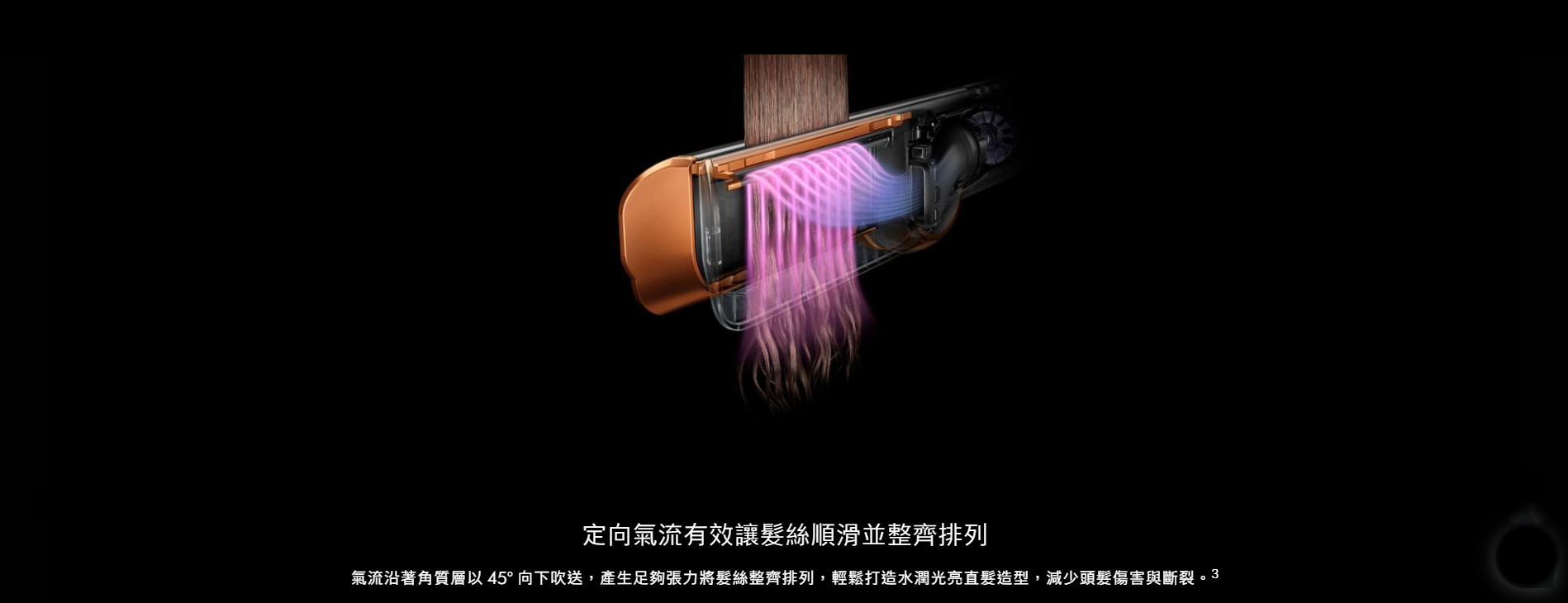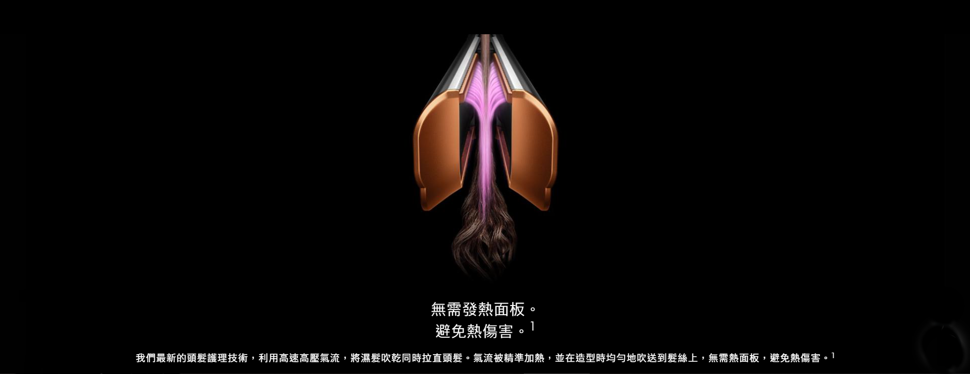 利用氣流,從濕髮吹乾同時順直髮絲。無需發熱面板。避免熱傷害。1