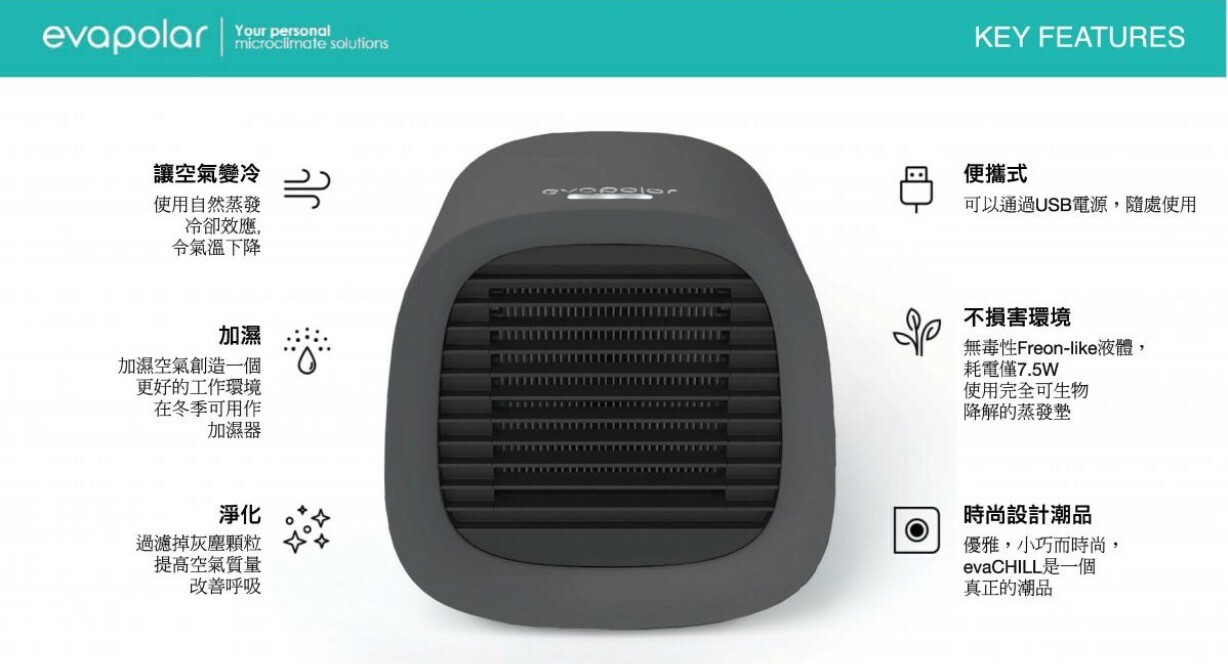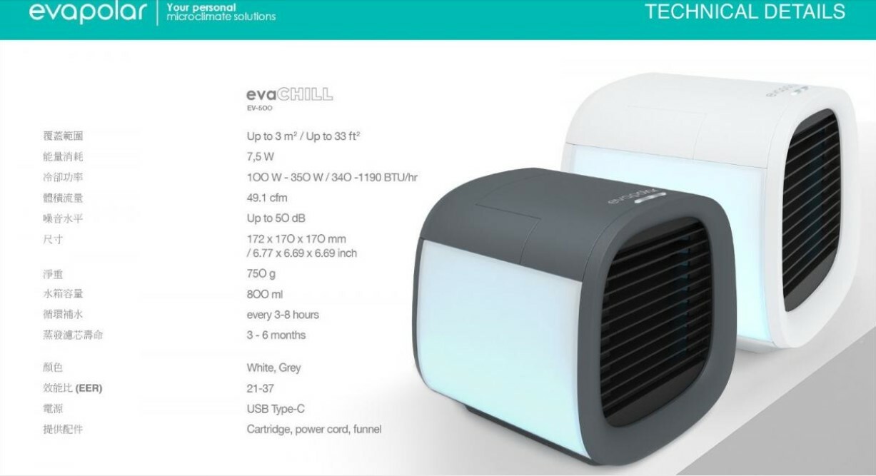 Evapolar EvaChill EV-500 第三代小型個人流動冷風機是一款便攜且實用的個人冷卻設備,為您帶來清爽舒適的使用體驗,讓您在炎熱的天氣中感受到涼爽和舒適。