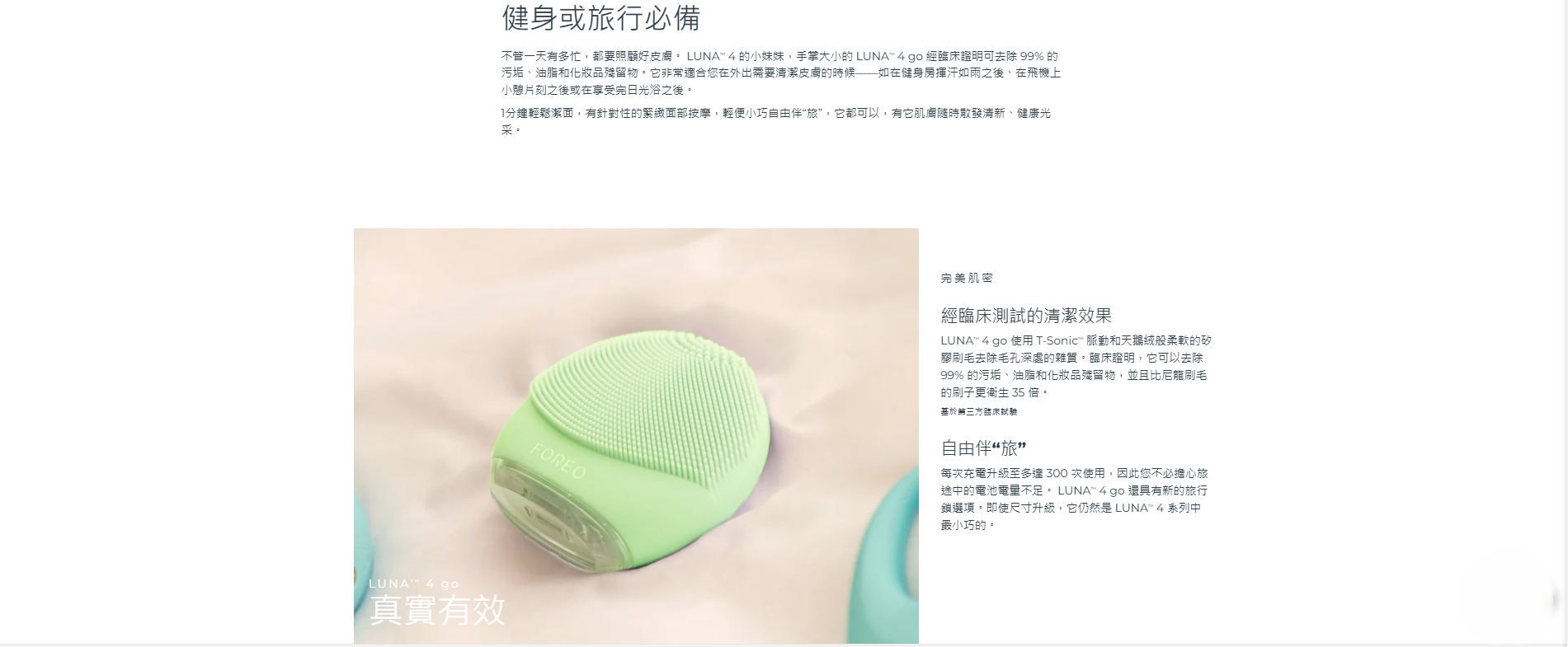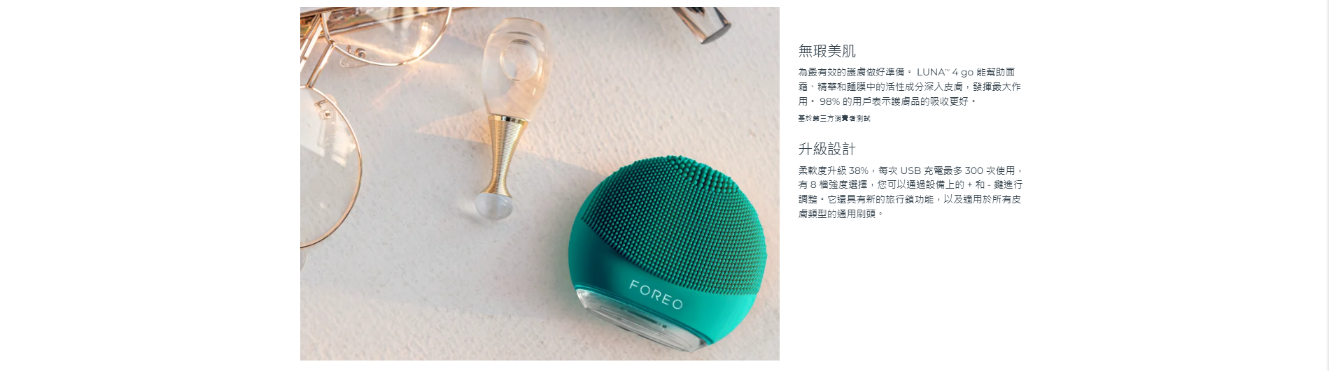 Foreo Luna 4 Go 洗面機 不管一天有多忙,都要照顧好你的皮膚。 LUNA™ 4 go 是最新的護膚潔面儀,能夠1分鐘輕鬆潔面,有針對性的緊緻面部按摩,輕便小巧自由伴“旅”,它都可以,有它肌膚隨時散發清新、健康光采。