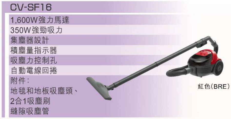 Hitachi 日立 CV-SF16 家庭式吸塵機提供高效吸塵效果,輕巧便捷,讓您輕鬆清潔家居環境。