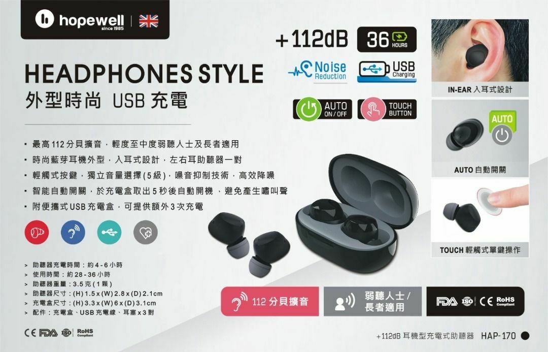 Hopewell HAP-81U 入耳充電式助聽器提供高質素助聽體驗,讓您輕鬆享受清晰聲音。
