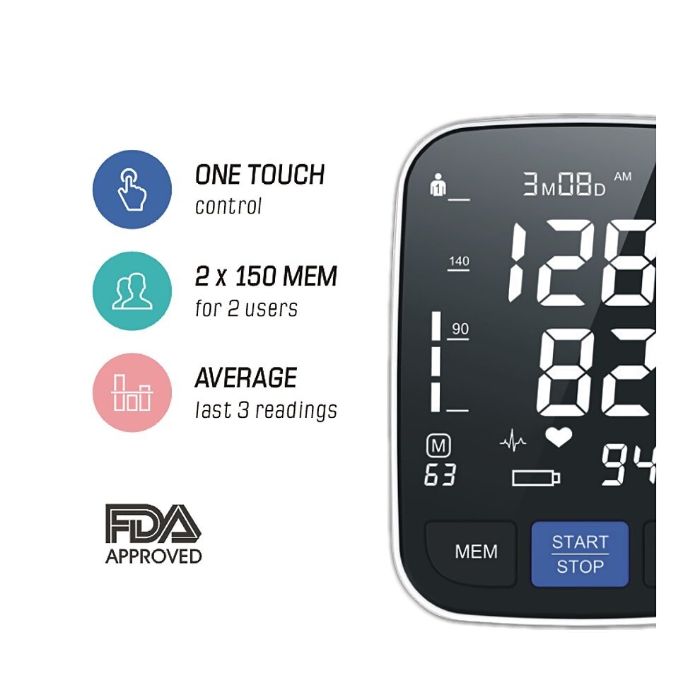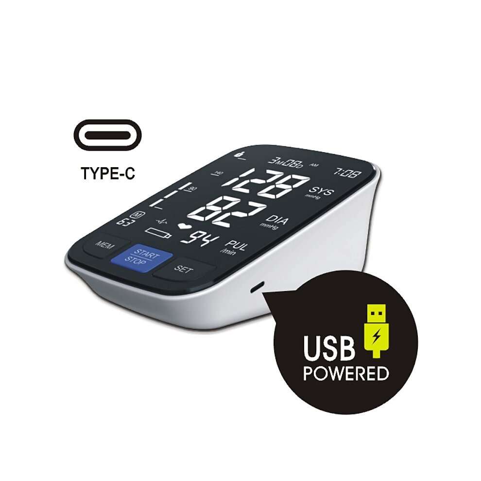 機身小巧,配以特大背光 LCD 顯示屏。可用 USB-C 電源,更方便可靠。ONE TOUCH 一按全自動量度。2 x 150 組量度記憶。