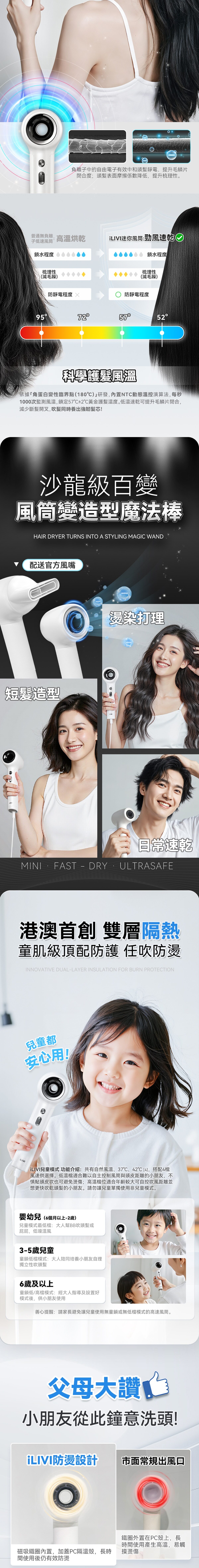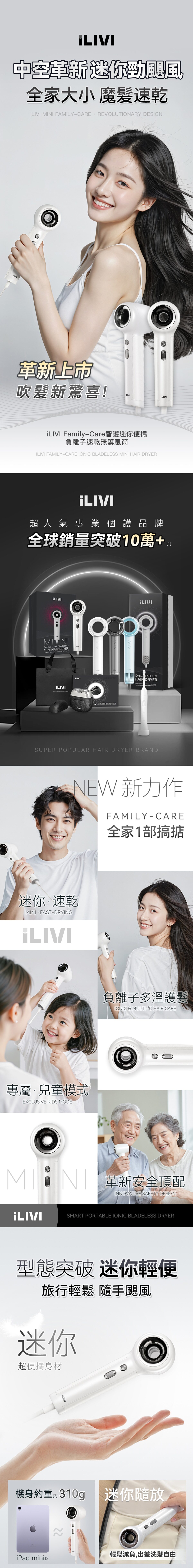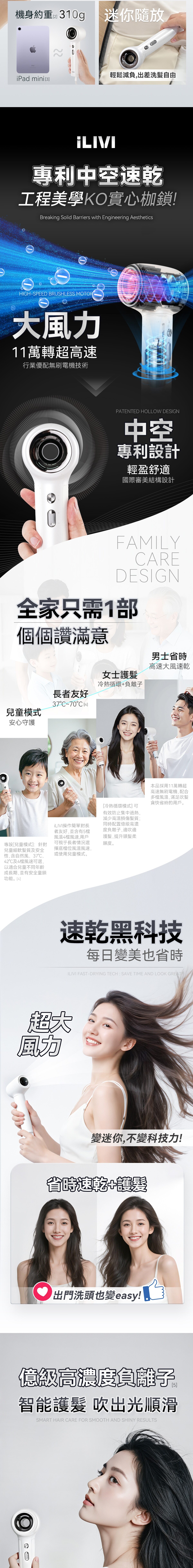 iLivi Family-Care革新上市!巴掌大高速風筒!迷你快乾,億級負離子護髮,中空唔kick髮,專屬37℃兒童模式!
