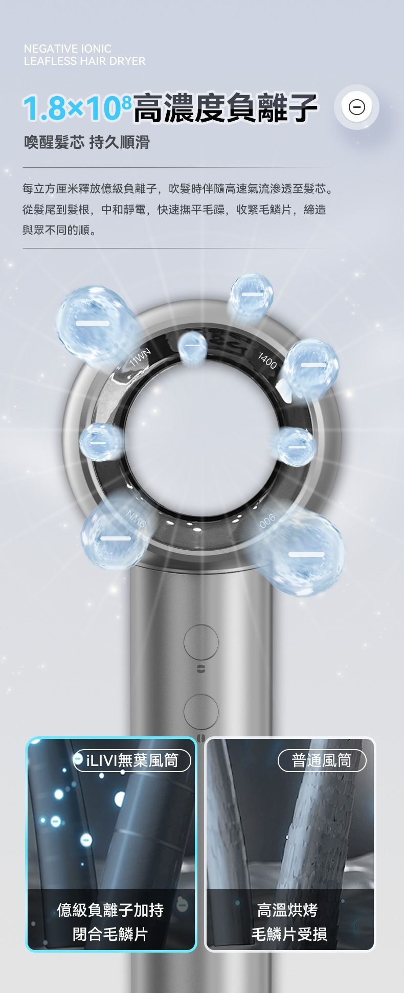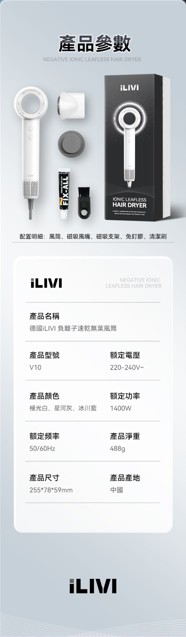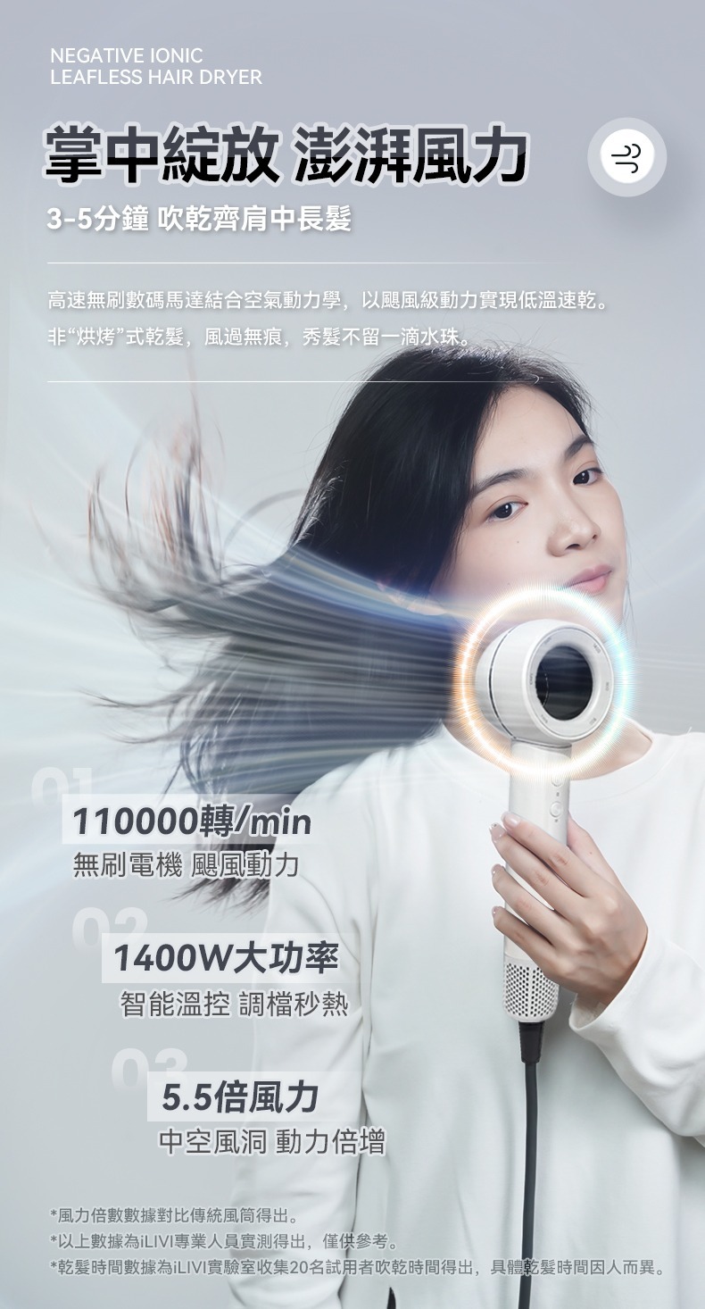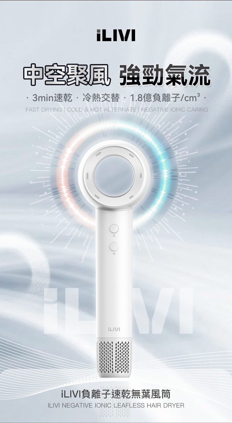 iLIVI V10 負離子速乾無葉風筒 結合創新科技和精巧設計,提供快速、舒適的頭髮乾燥體驗。無論是智能冷熱交替模式還是高效的負離子護髮技術,這款風筒都能為您帶來完美的髮型效果。