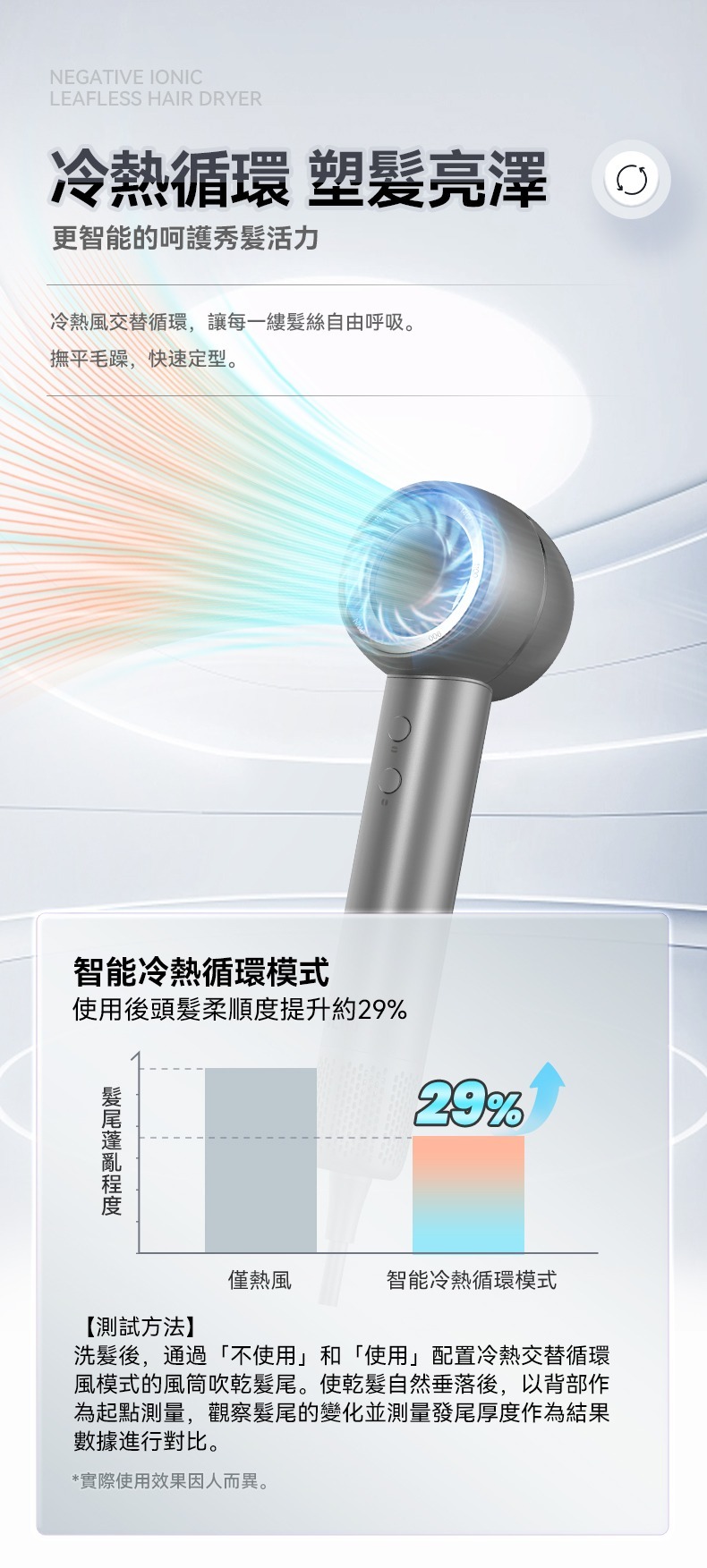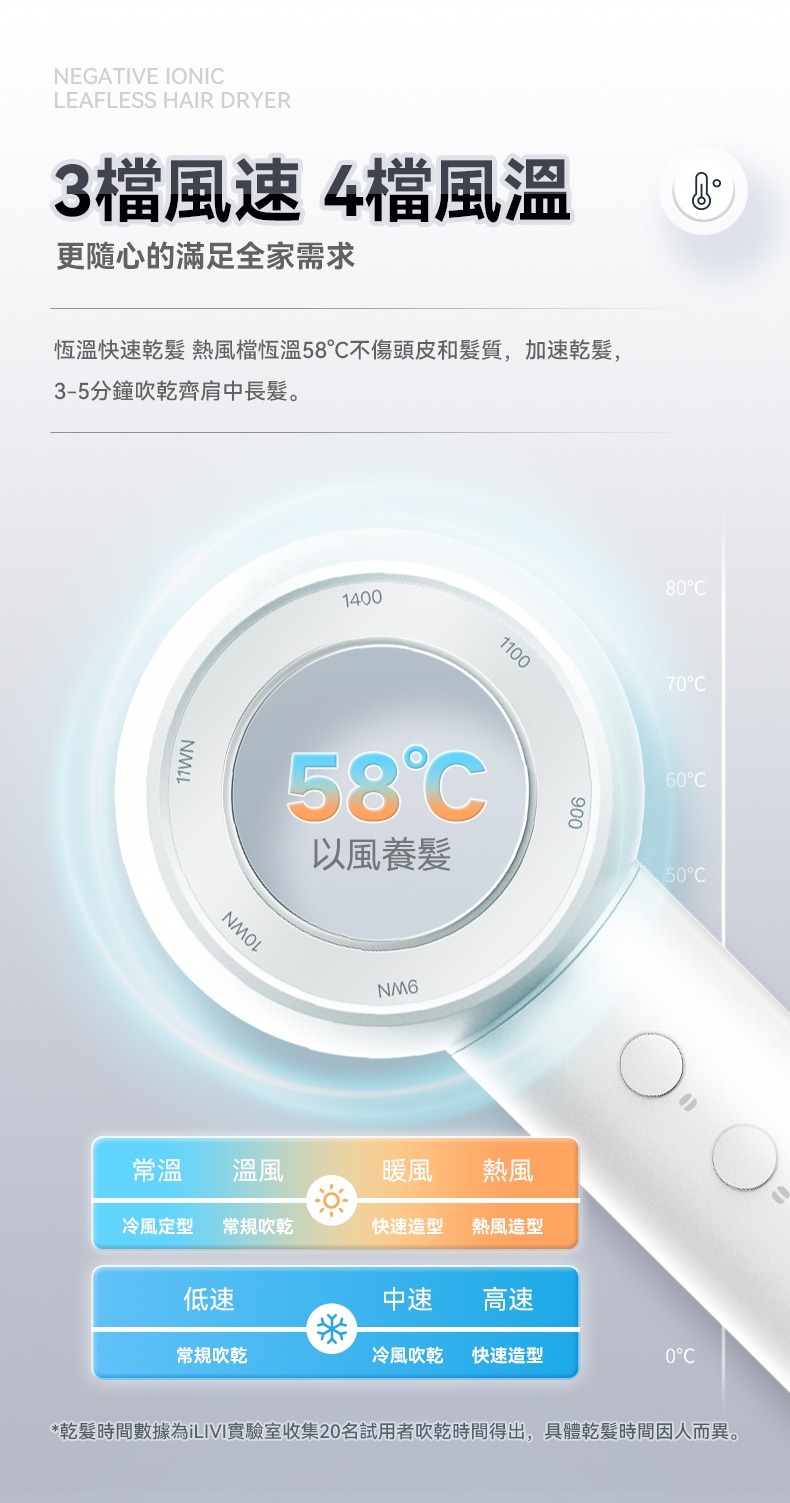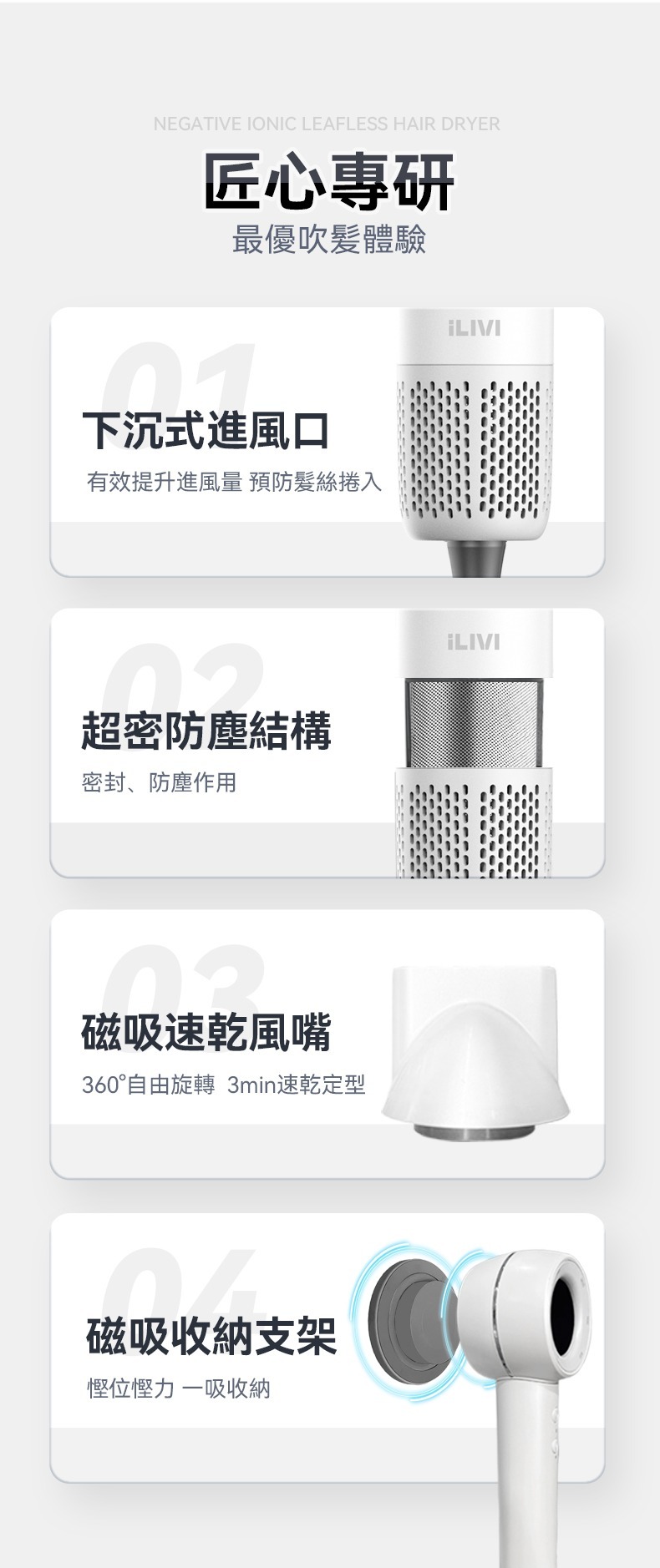 iLIVI V10 負離子速乾無葉風筒 結合創新科技和精巧設計,提供快速、舒適的頭髮乾燥體驗。無論是智能冷熱交替模式還是高效的負離子護髮技術,這款風筒都能為您帶來完美的髮型效果。