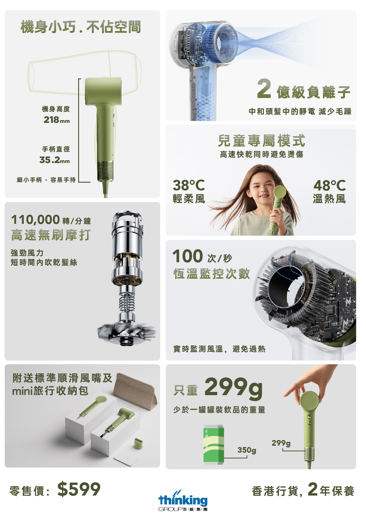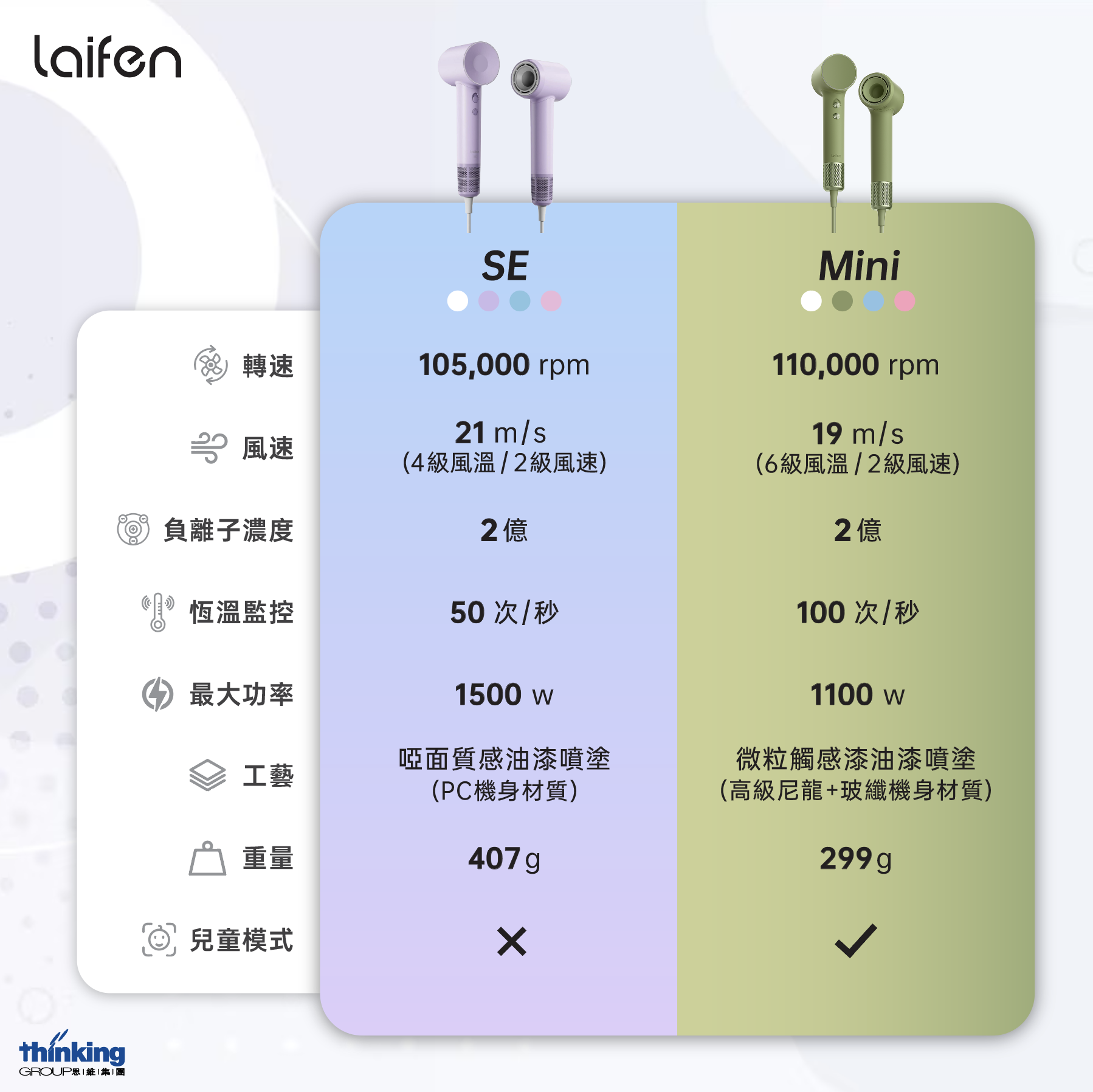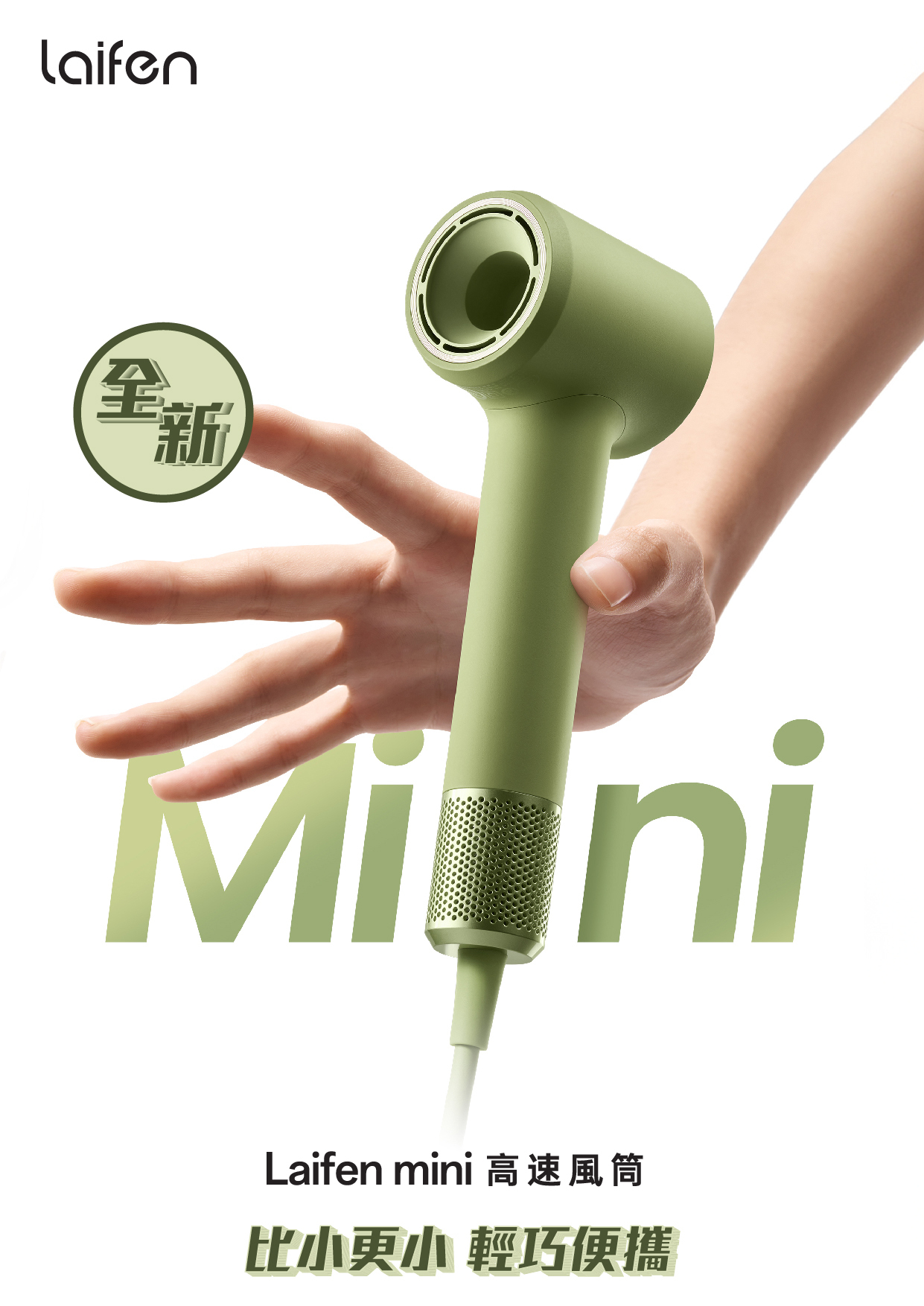 Laifen Mini 負離子高速風筒,採用了更輕巧的機身設計,讓您享受高效、舒適的吹風體驗。便攜、不佔空間的同時,重量更輕,帶來輕盈舒適握持手感。