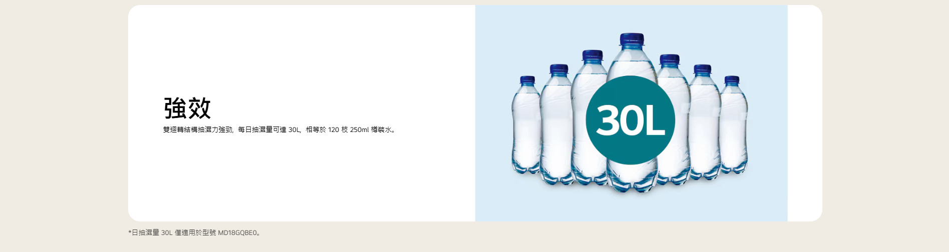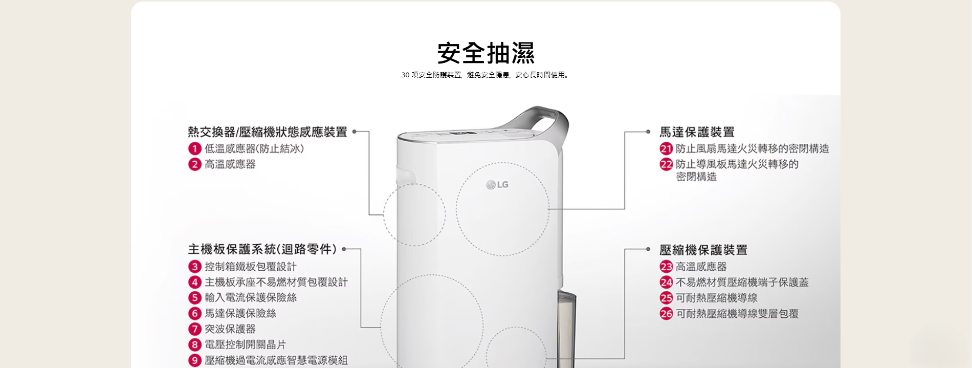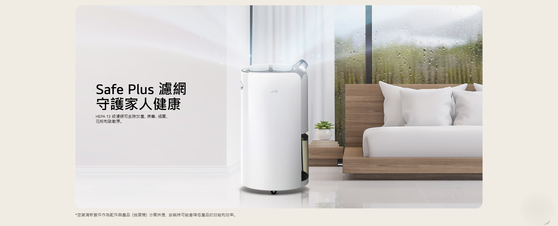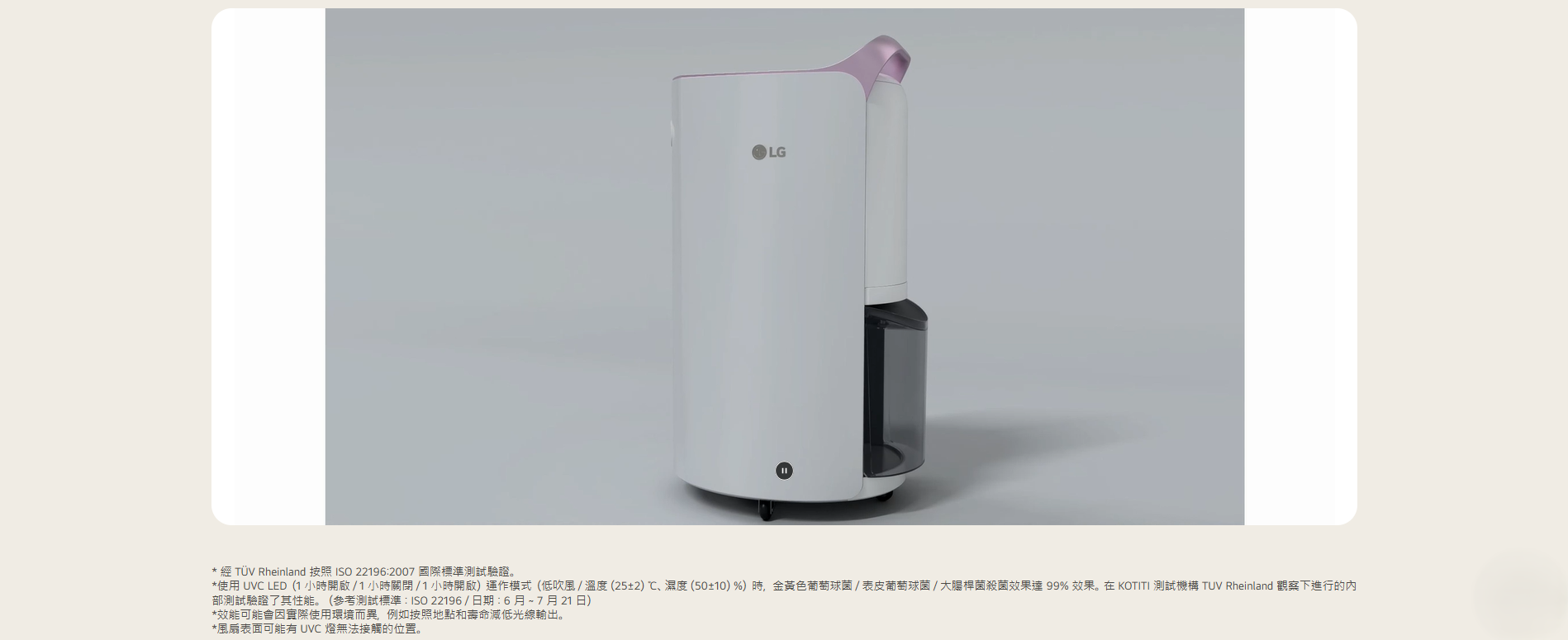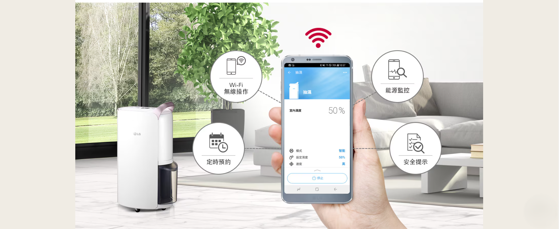 LG樂金 MD18GQBE0 30公升變頻式離子殺菌智能抽濕機提供有效的濕氣控制,打造舒適乾爽的室內環境。