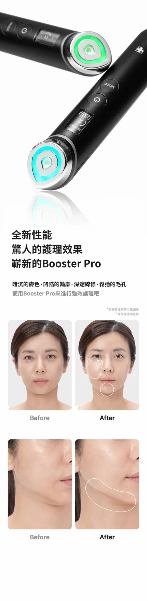 AGE-R Booster Pro美容儀是6合1全面護理儀器,具備光澤、彈性、豐盈、毛孔、LED及振動護理功能。擁有Booster、MC、Derma Shot和Air Shot四種模式,提供針對性肌膚護理。