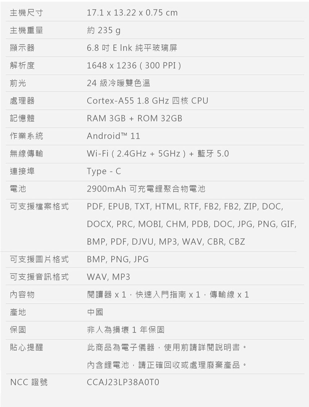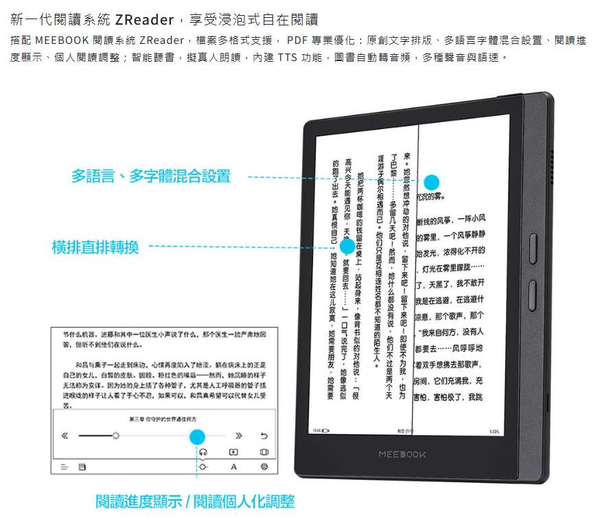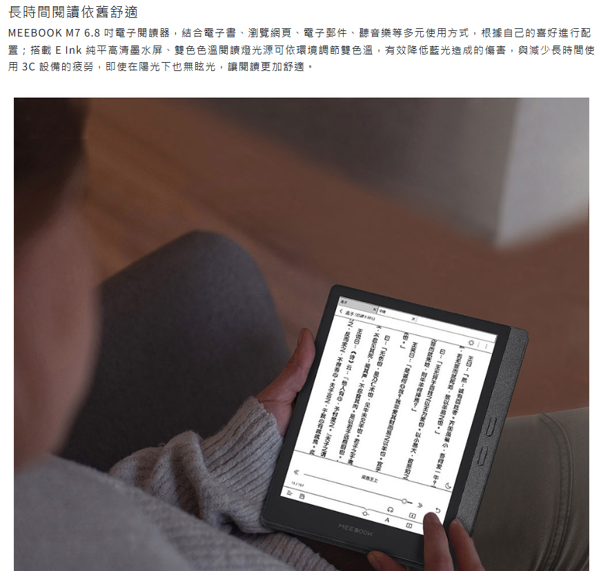MEEBOOK M7 6.8 吋 電子閱讀器提供優質電子閱讀體驗,讓您沉浸在書海中,享受閱讀的樂趣。