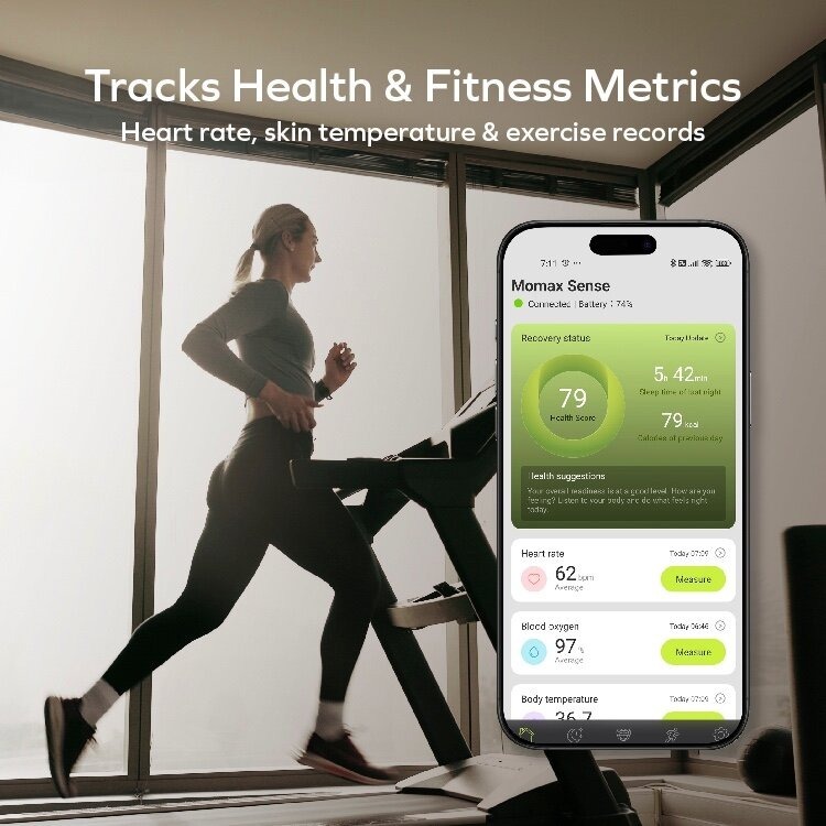Momax 1-Sense 智能戒指,先進的健康和健身監測 1-Sense 智慧環可準確追蹤心率變異性、SpO2 水平、皮膚溫度、行走步數、燃燒的卡路里和運動數據,以提供全面的健康和健身見解。