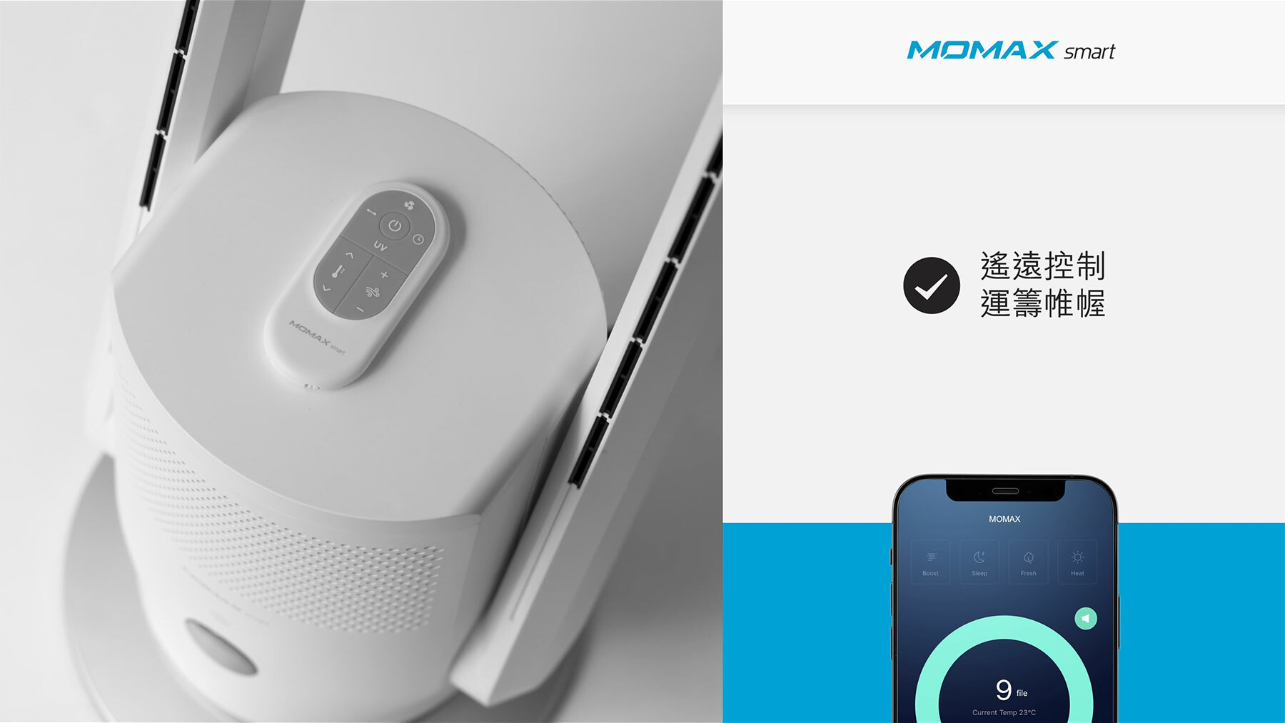 Momax Ultra-Air Plus IoT 智能紫外光空氣淨化冷暖風機 附兩個過濾網 - 時刻令你在家中呼吸乾淨無菌既空氣,同時令到家中變得溫暖。