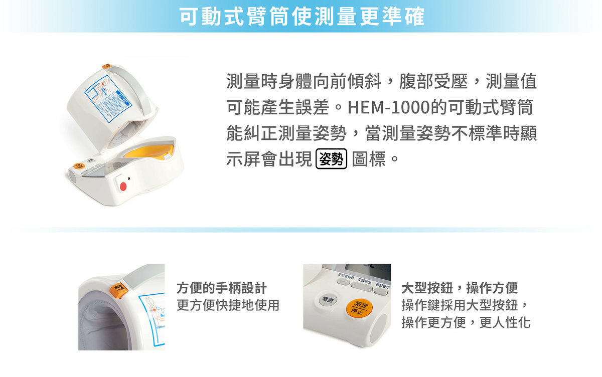 歐姆龍 Omron HEM-1000 手臂式血壓計, 可動式臂筒,有心律不齊檢測功能