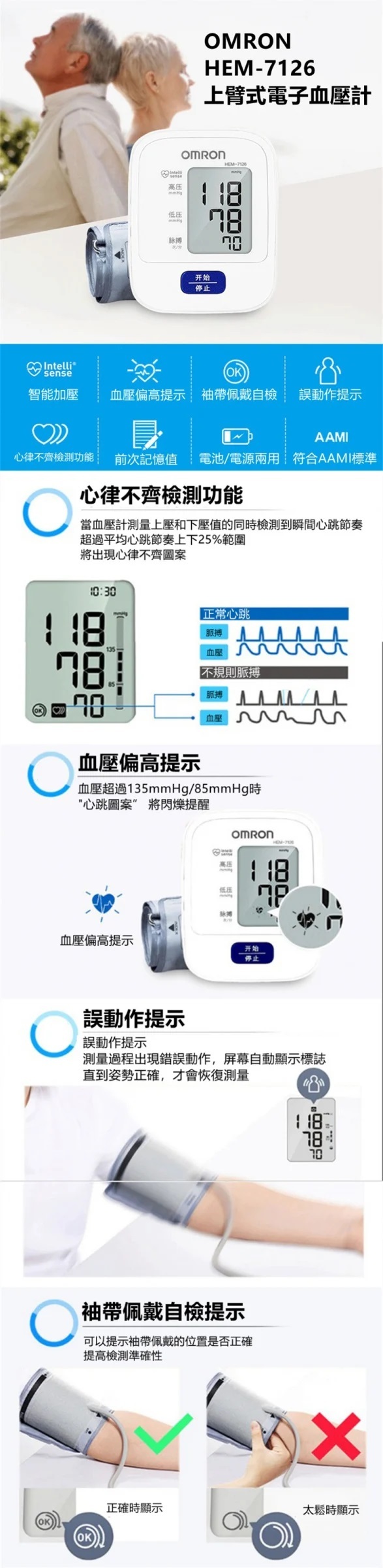 OMRON 歐姆龍 HEM-7126 上臂式電子血壓計結合了精確度和便利性,是一款值得信賴的健康監測設備,讓您方便地追蹤和管理自己的血壓數據。
