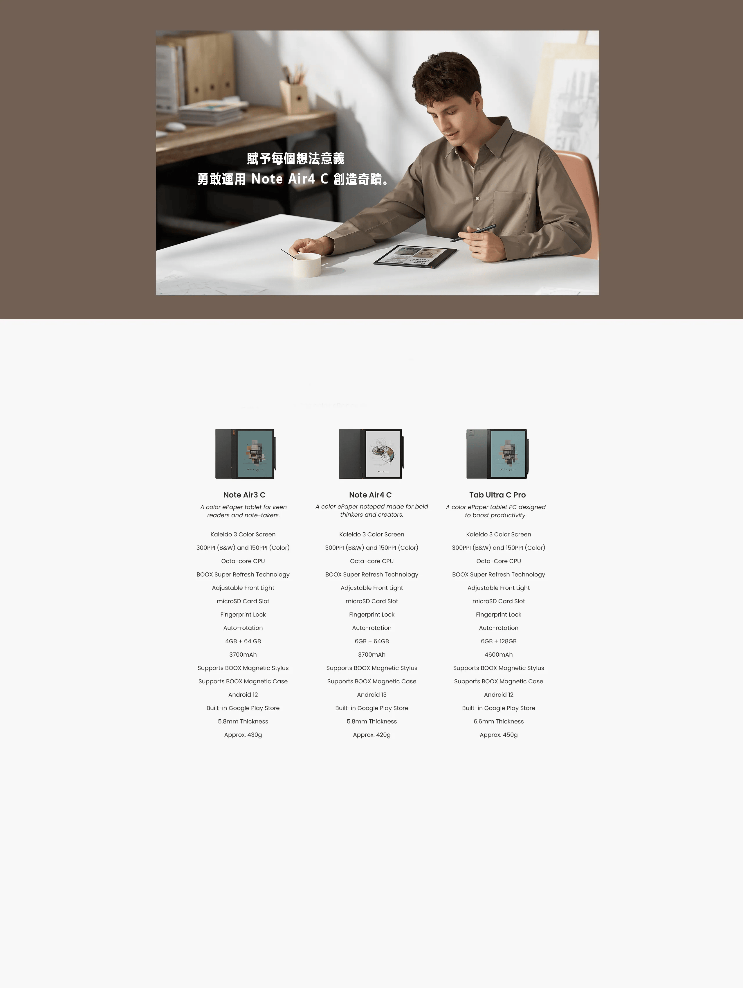 Onyx BOOX 10.3" Note Air 4 Color 電子書閱讀器提供多彩的閱讀體驗,讓您沉浸於生動的電子書世界中。這款電子閱讀器配備10.3吋螢幕,支援彩色顯示,讓您享受清晰亮麗的閱讀內容,是閱讀愛好者的理想選擇。