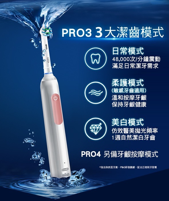 Oral-B iO3具備了強勁而柔和的微震技術,磁力驅動系統可集中平穩地將能量無消耗傳送至每根刷毛的尖端,並結合了Oral-B以牙醫工具為靈感啟發的圓形刷頭獨特設計,讓您每天享受如專業洗牙般的潔淨感受。智慧型壓力感應器可有助於防止刷牙力度過當,保護牙齦和琺瑯質。請每3個月更換Oral-B iO智能系列的可替換式電動牙刷刷頭,以達到最有效的清潔效果。