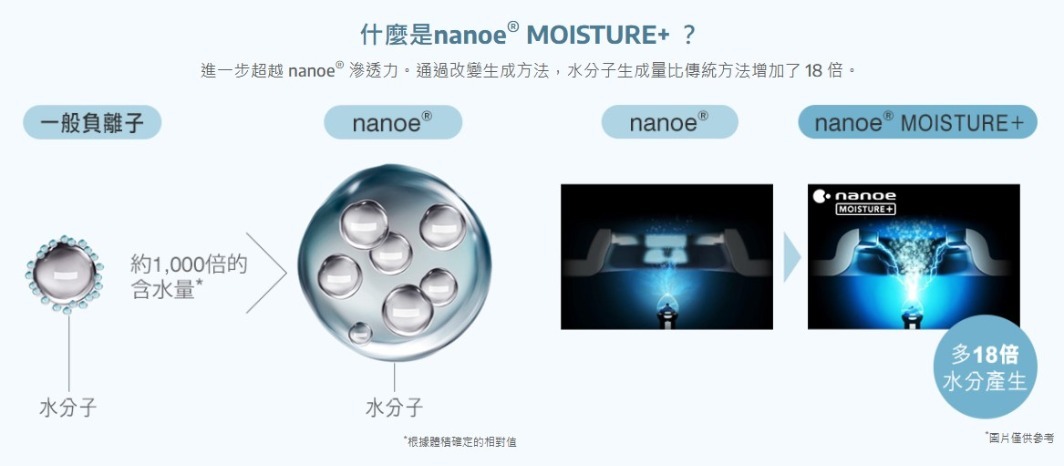 創新nanoe® MOISTURE+技術,為秀髮帶來1.9倍水潤^