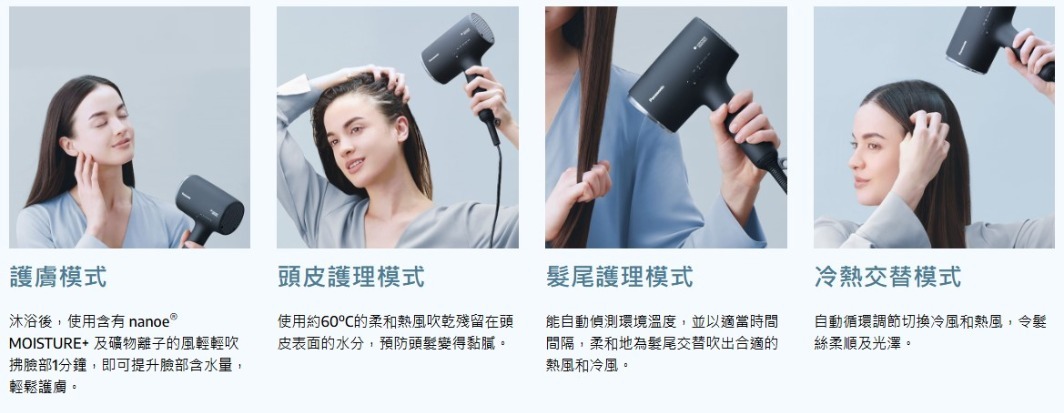 6種護理模式(熱風、智能冷熱交替、冷風、髮尾護理、頭皮護理、美肌)