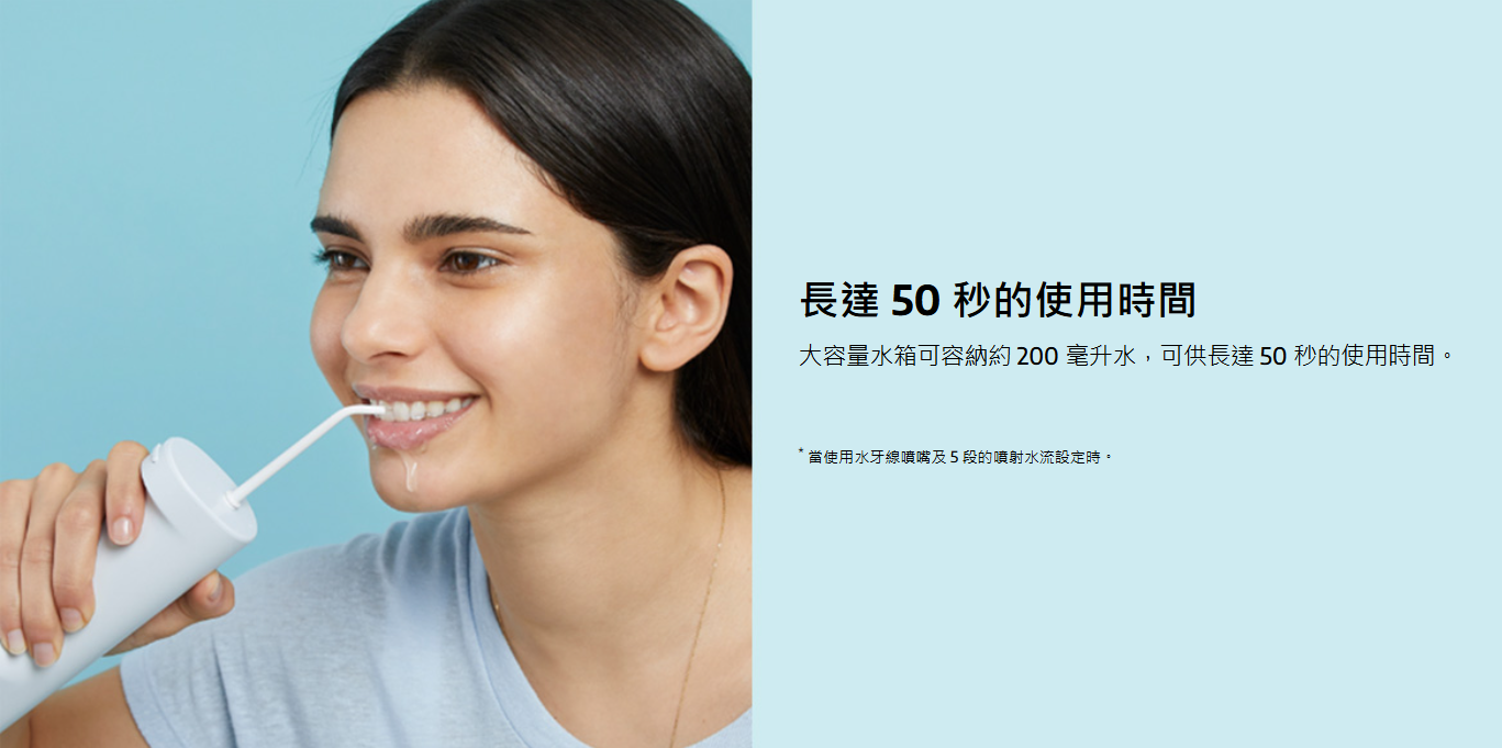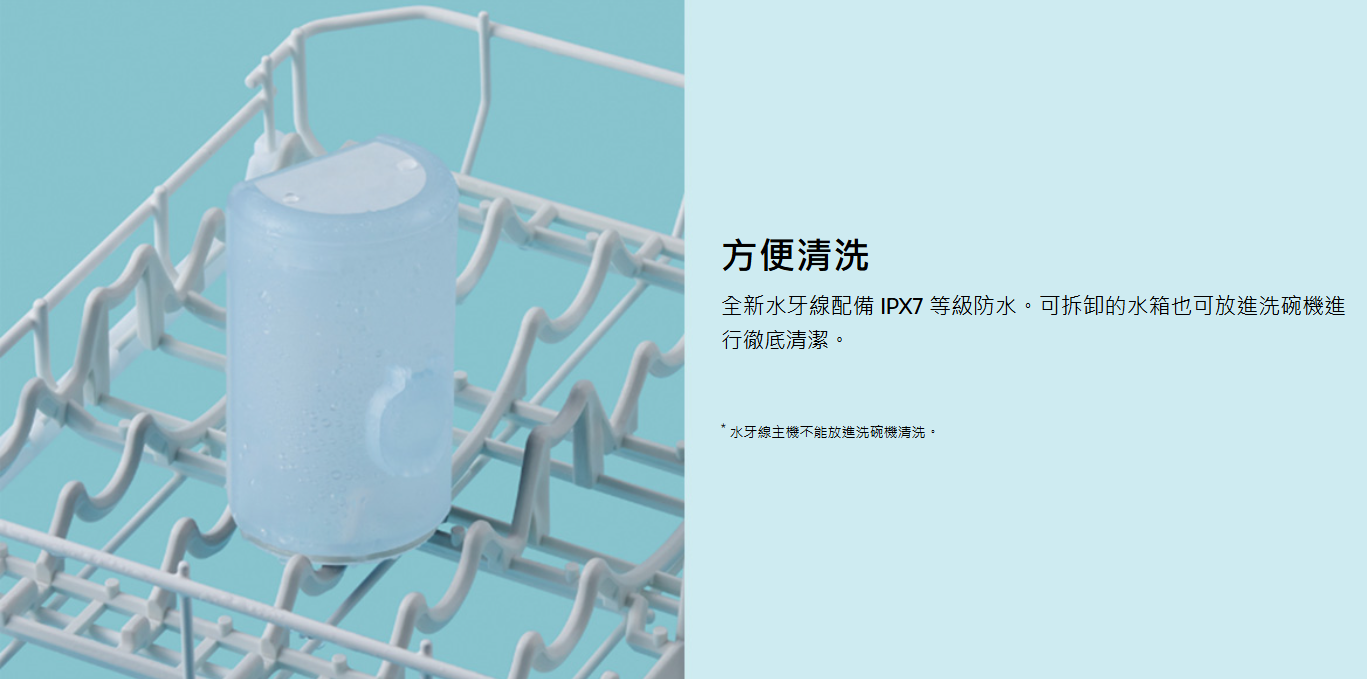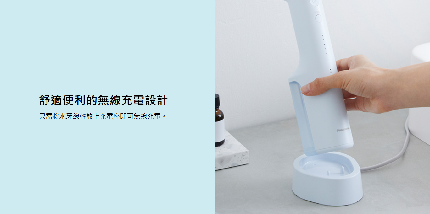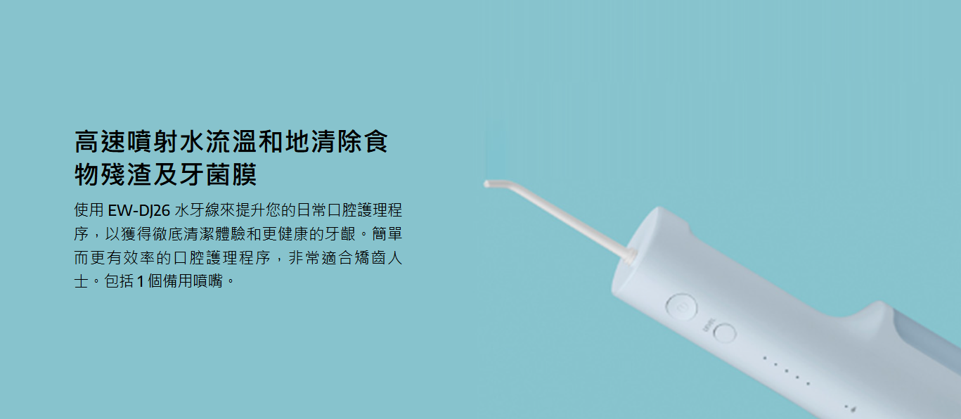 Panasonic 樂聲 EW-DJ26 充電式水牙線脈衝式高速噴射水流,每分鐘高達1,600次*,徹底清潔難刷部位,有效去除食物殘渣,保持口腔清潔(* 於噴射水流「噴射」設定時)