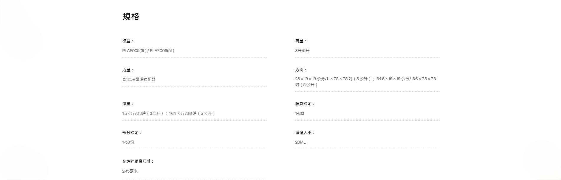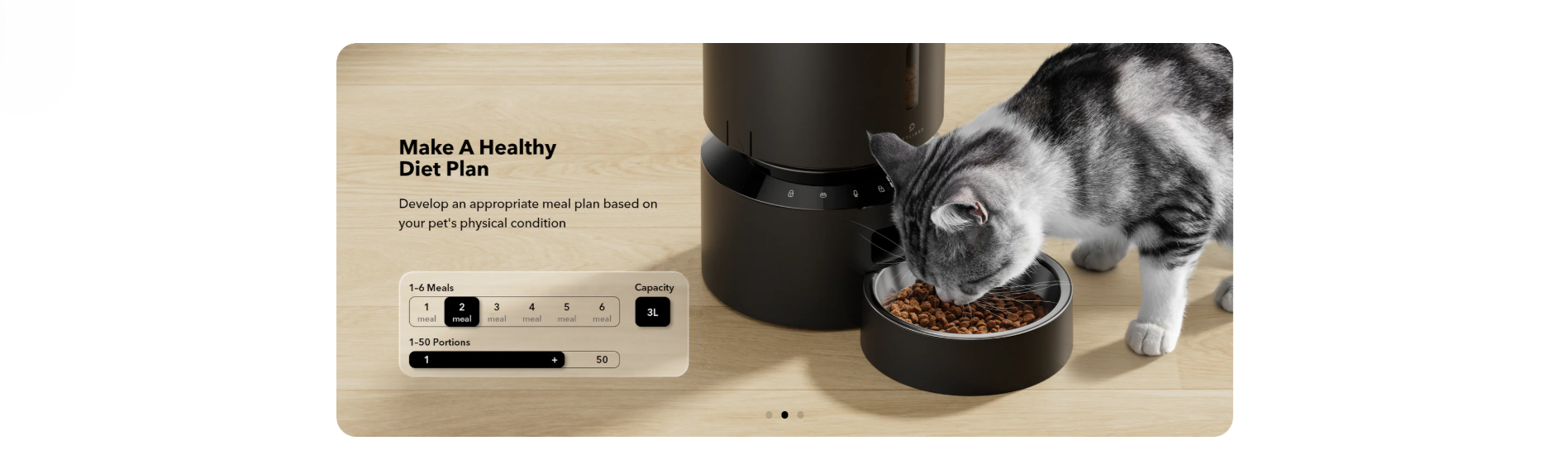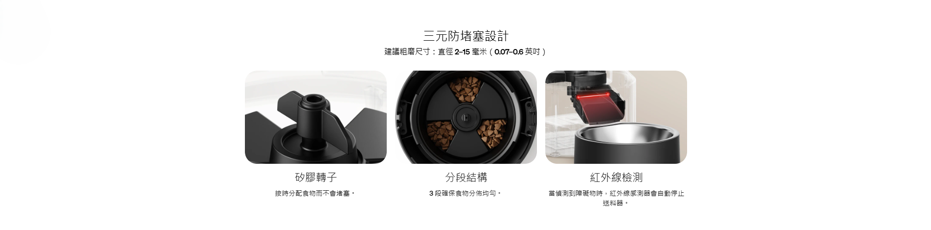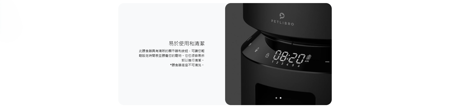 PETLIBRO 寵物自動3L餵食器是一款具有新鮮感的餵食器,擁有專利轉子和密封條,保持食物的新鮮和鬆脆。設置簡單,可每天定時餵食1-6餐,每餐最多50份。具有易於閱讀的LED面板和電池監控功能。此外,它還具有雙電源選項,透明窗戶可監控食物水平。您還可以錄製個性化的用餐訊息,並且易於清潔,不含雙酚A。容量為3L,適用於2-15mm大小的飼料顆粒。