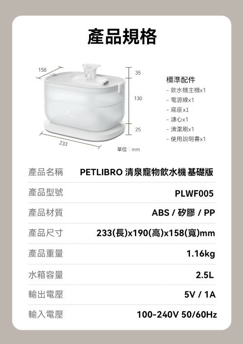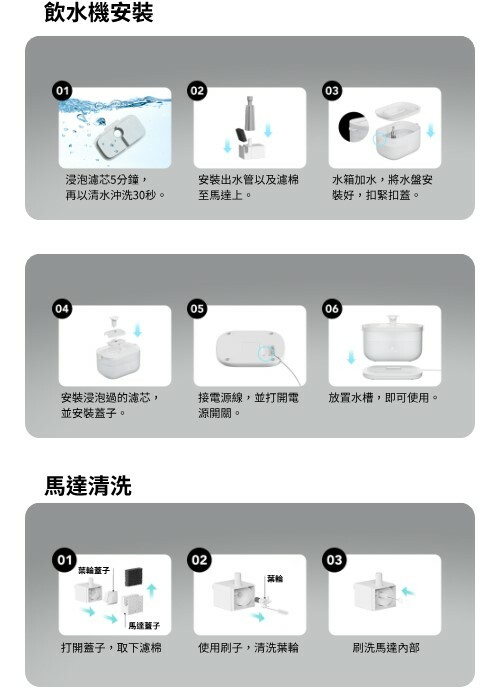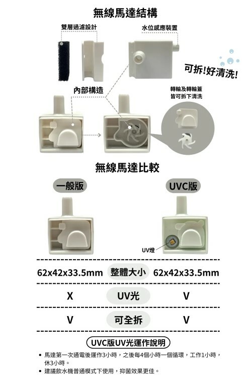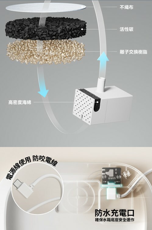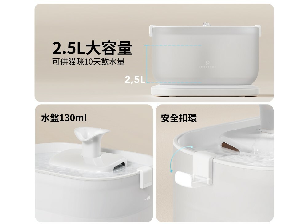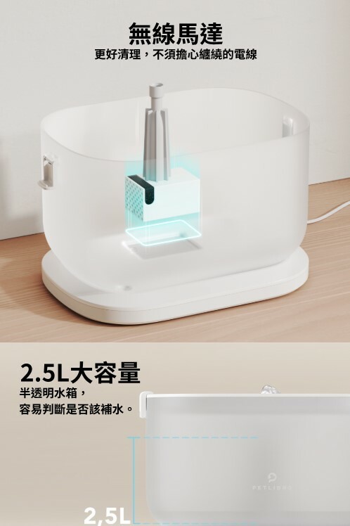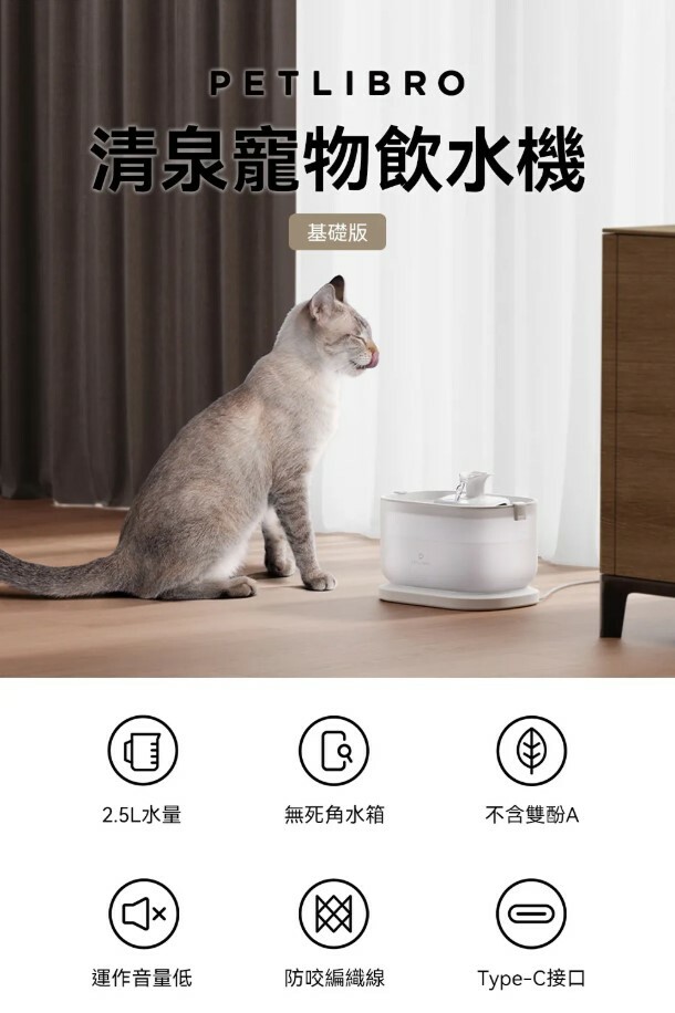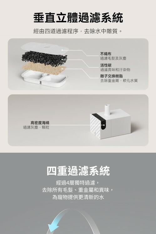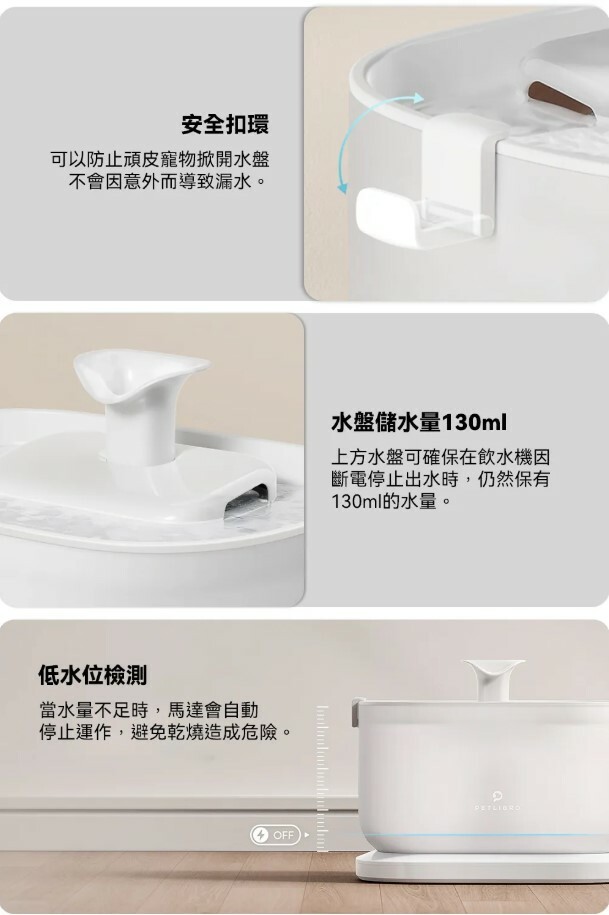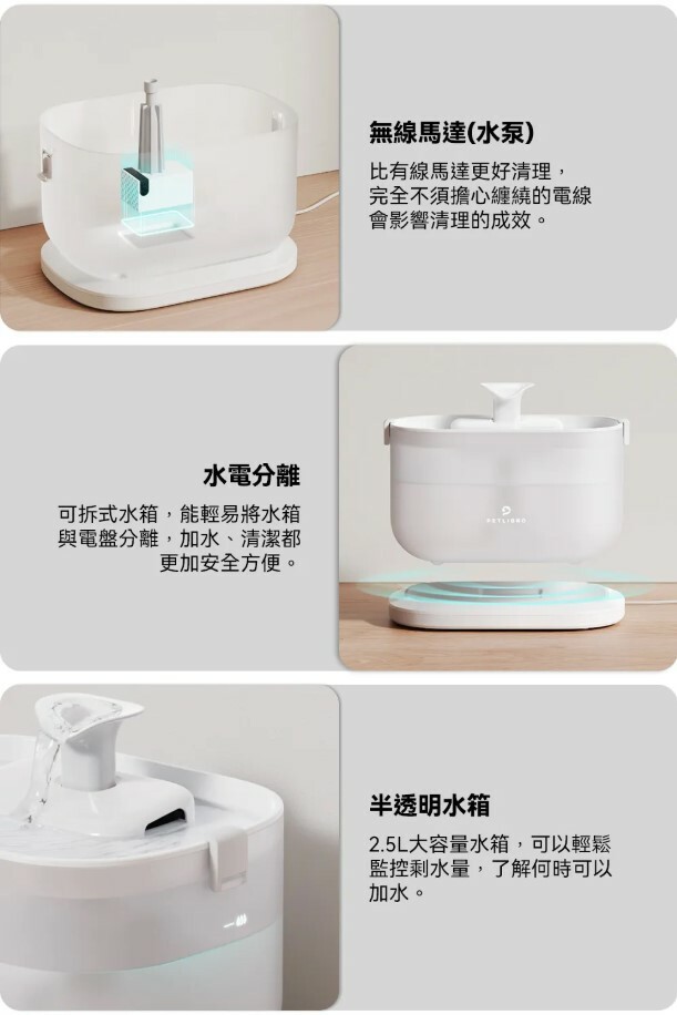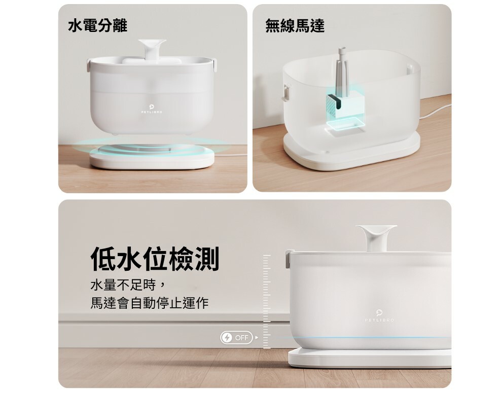 這款寵物飲水機 提供持續的24/7水流,擁有4層立式過濾系統,有效淨化水質。噪音極低,僅為23dB,讓您享受安靜舒適的生活環境。透明水箱附有註記水線,方便查看水位,並具有易於清潔的可拆卸設計,保持流水清潔衛生。