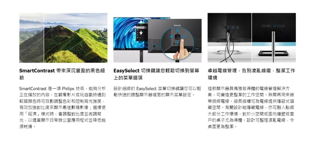 輕巧 Ergo 底座是一款使用方便的 Philips 顯示器底座,可以傾斜、旋轉及調較高度,從而讓每位使用者調整螢幕位置,得到最舒適、有效的觀賞角度。