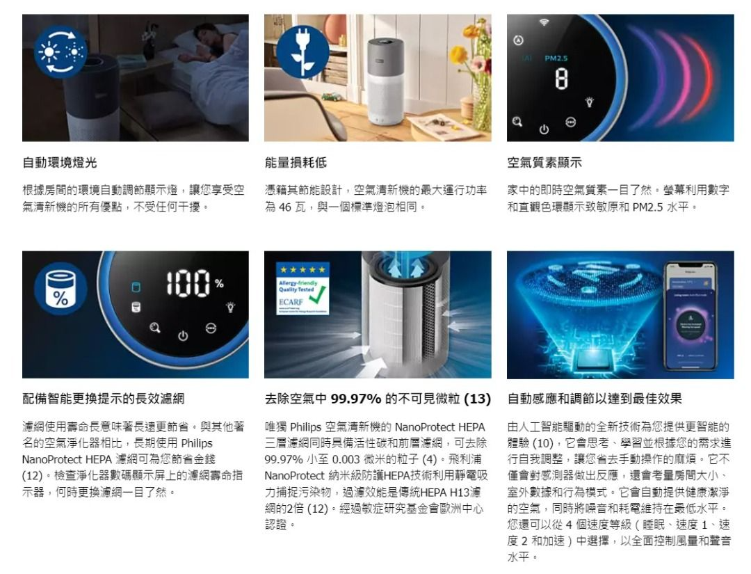 Philips 飛利浦 AC2936/33 Series 2000 空氣清新機提供高效淨化室內空氣,讓您享受清新健康的生活環境。
