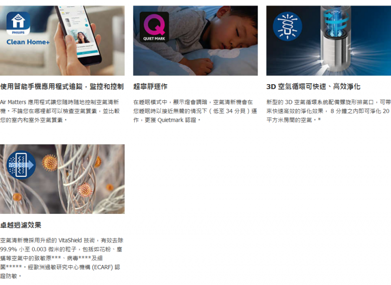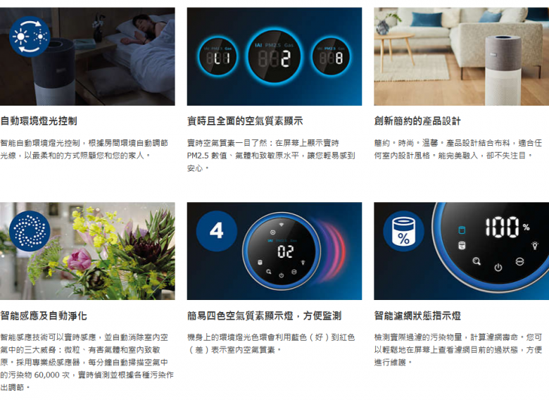 Philips 飛利浦 AC3033/30 Series 3000i 空氣清新機能有效淨化室內空氣,讓您享受清新健康的生活環境。