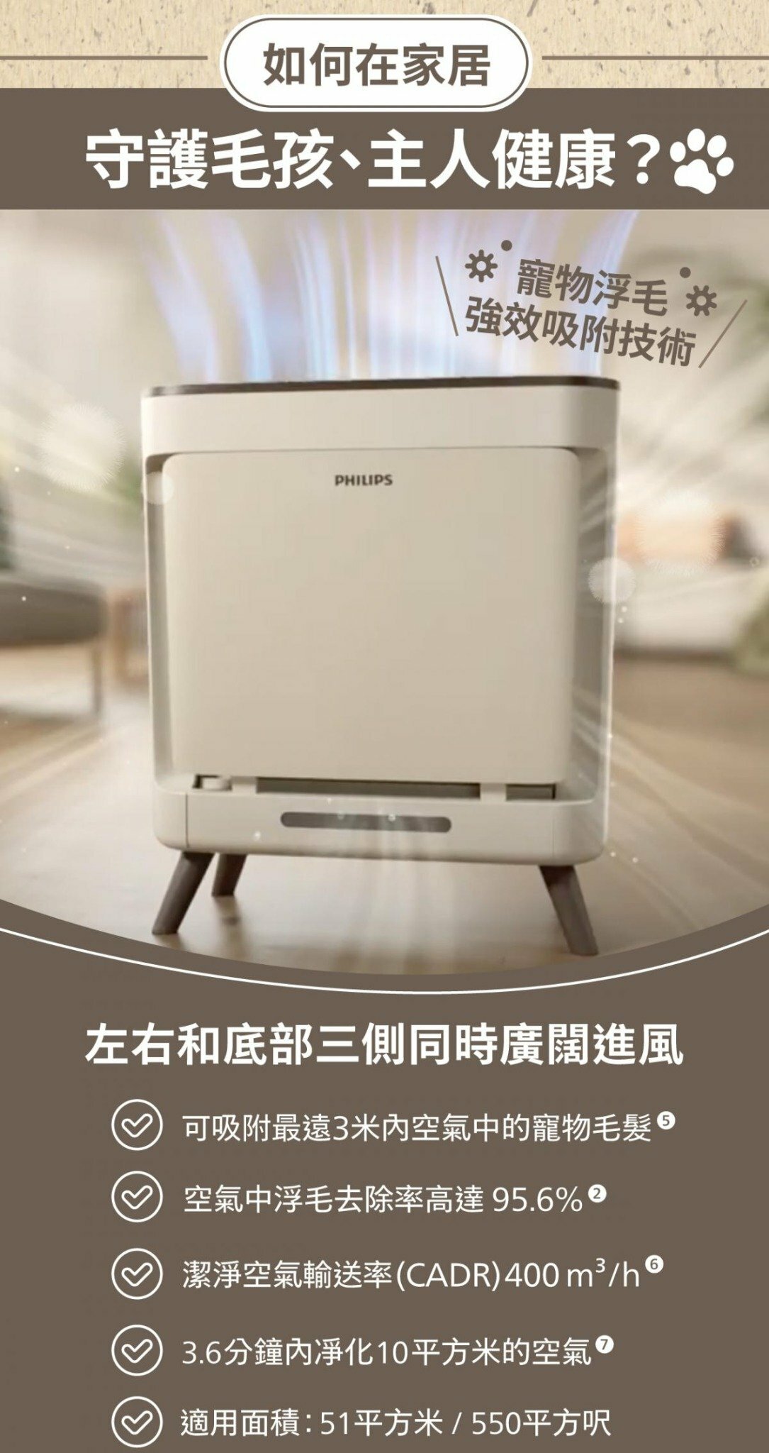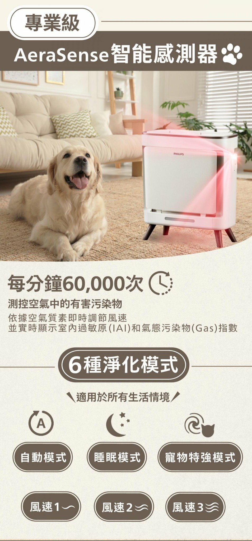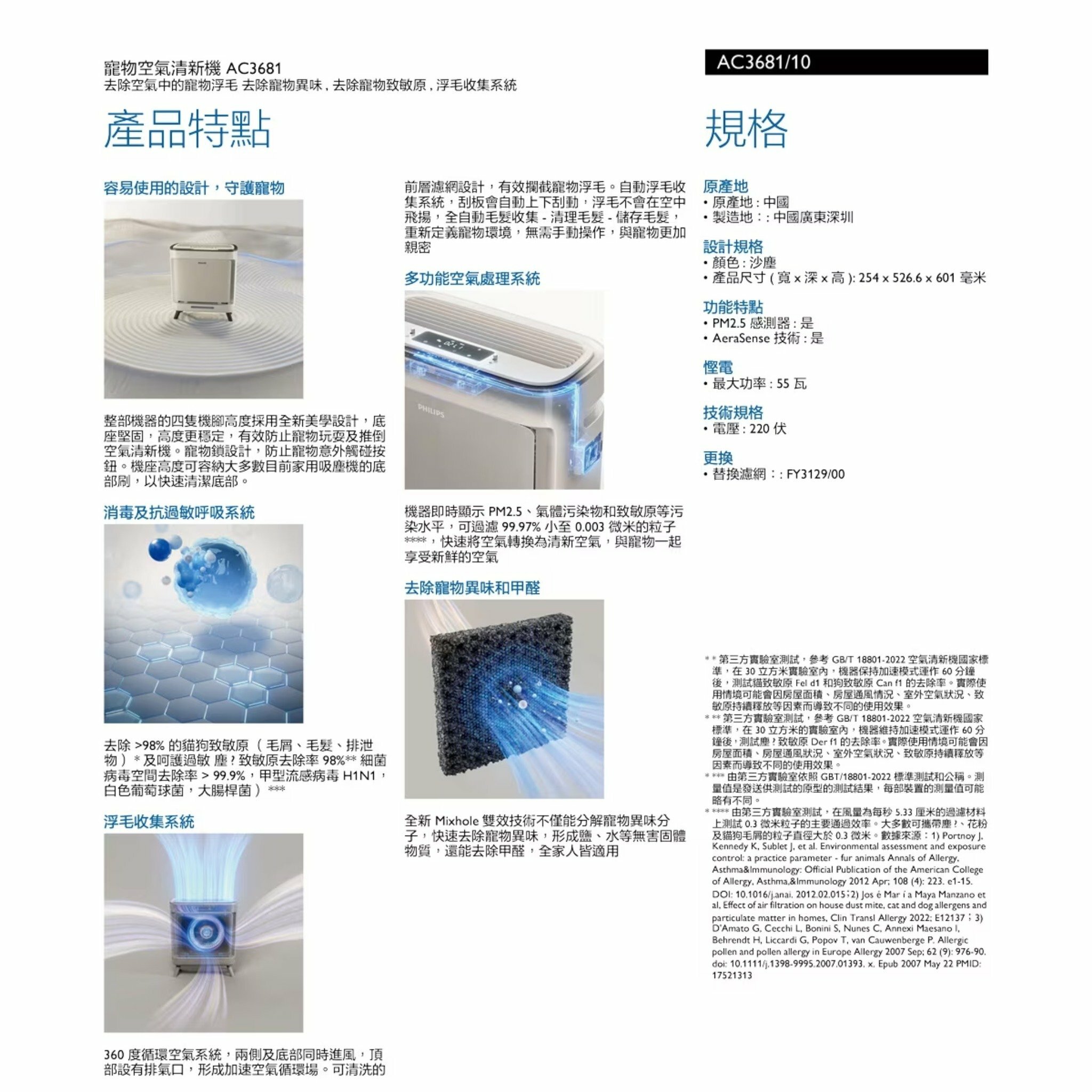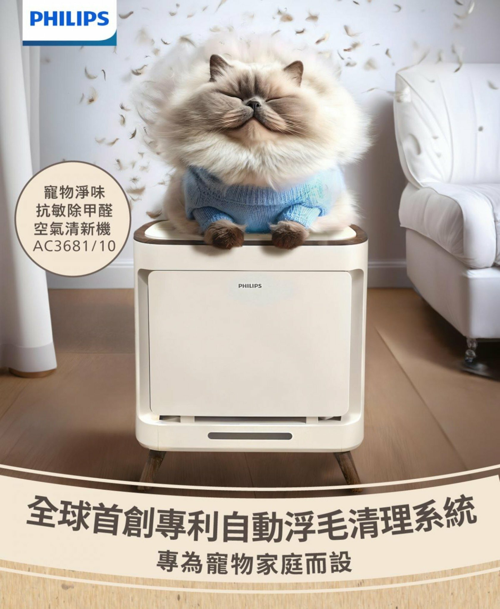 Philips 飛利浦 AC3681 寵物淨味抗敏除甲醛空氣清新機有效除去室內異味、過敏原及甲醛,讓您享受清新健康的空氣。