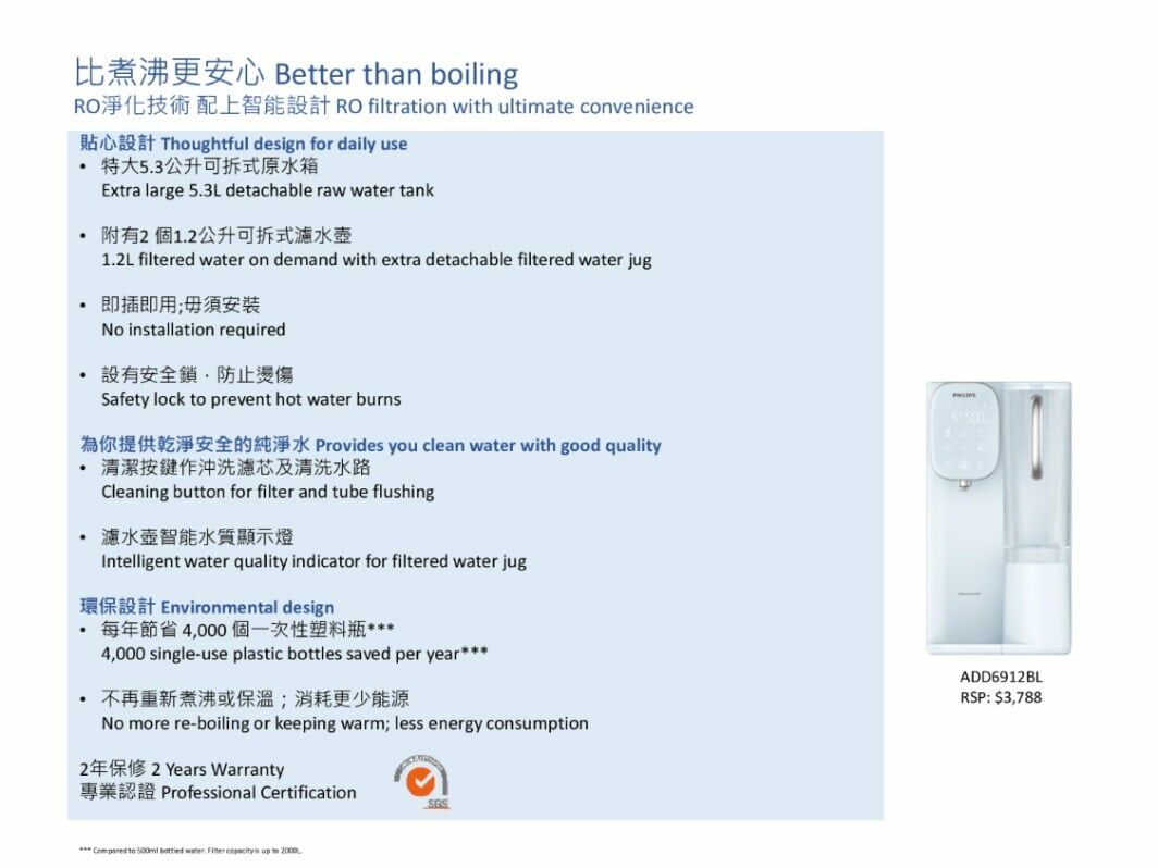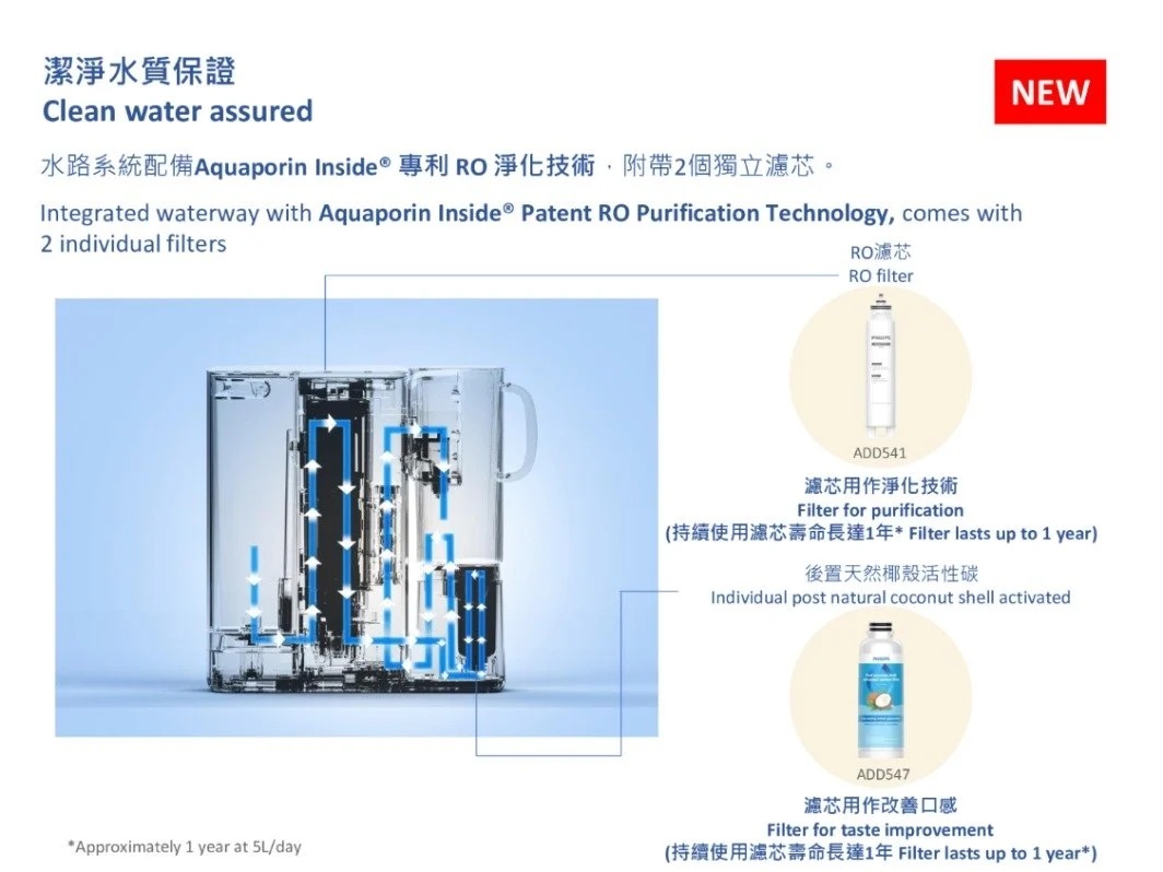 Philips ADD6912BL RO 即熱飲水機,採用 Aquaporin Inside® 專利 RO 過濾技術,提供長期保護,讓冷熱水變得簡單