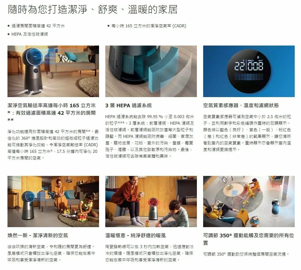 Philips 飛利浦 AMF220 2000 Series 3 合 1 風扇 暖風 空氣清新機結合風扇、暖風和空氣清新功能,為您帶來舒適溫暖的環境和清新空氣。